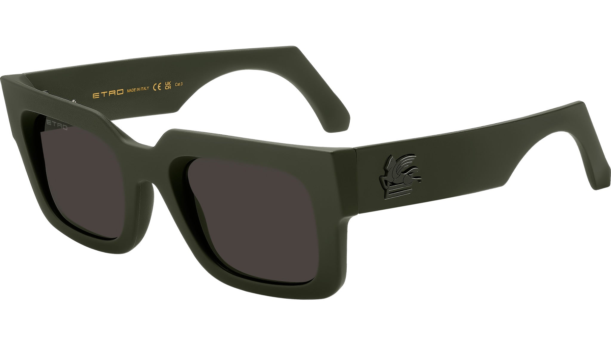 Occhiali da sole Etro 0080/S 1ED IR unisex con montatura rettangolare in nylon verde e lenti in CR-39 grigio. La collezione eyewear 'Etroscreen' di ETRO rinnova i codici estetici del brand, aggiungendo un tocco contemporaneo grazie a proporzioni aggiornate che conferiscono ai modelli un look decisamente più audace. Le aste, eleganti e leggere, sono arricchite dal simbolo Pegaso in metallo, dal logo inciso sulle lenti e dai terminali distintivi, per un comfort che non rinuncia mai all’iconicità. Linea: Tailoring. Codice modello: 207788. Codice colore: 1ED IR. Rivenditore autorizzato Etro online. Gli occhiali vengono consegnati con custodia e accessori originali e sono coperti dalla garanzia ufficiale di 12 mesi del produttore.