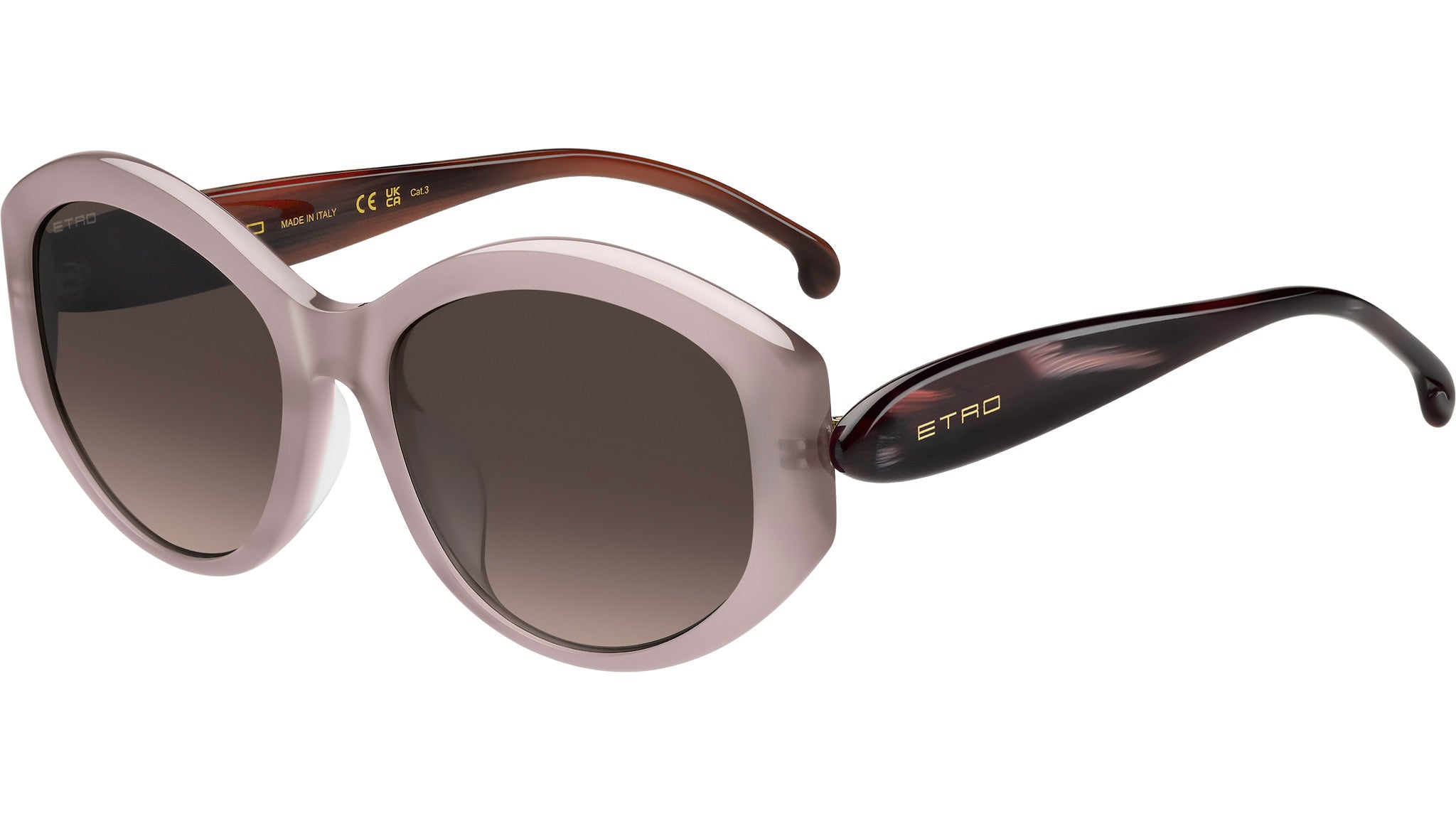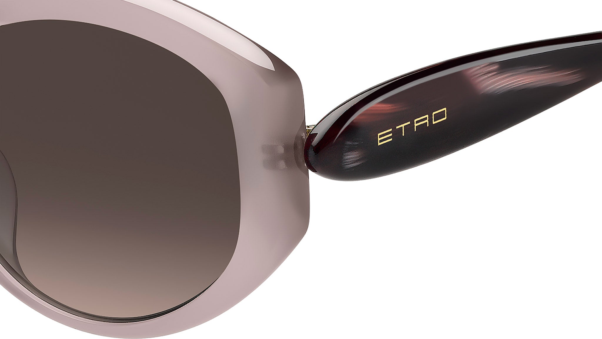 Occhiali da sole Etro 0086/F/S G3I HA donna con montatura ovale in acetato malva e lenti in CR-39 marrone sfumato. Emblema dello spirito ETRO, la collezione eyewear 'Etropaisley' celebra il motivo iconico del brand in tutte le sue forme e varianti cromatiche. Questi occhiali da sole richiamano un'opera d'arte, con una montatura geometrica dalle curve morbide e aste ondulate che evocano la silhouette del celebre motivo Paisley. Proporzioni delicate e combinazioni cromatiche audaci, incluse irresistibili varianti bicolore, definiscono ogni modello. Il logo ETRO e i terminali distintivi completano il design con un tocco esclusivo. Linea: Etromania. Codice modello: 207826. Codice colore: G3I HA. Rivenditore autorizzato Etro online. Gli occhiali vengono consegnati con custodia e accessori originali e sono coperti dalla garanzia ufficiale di 12 mesi del produttore.
