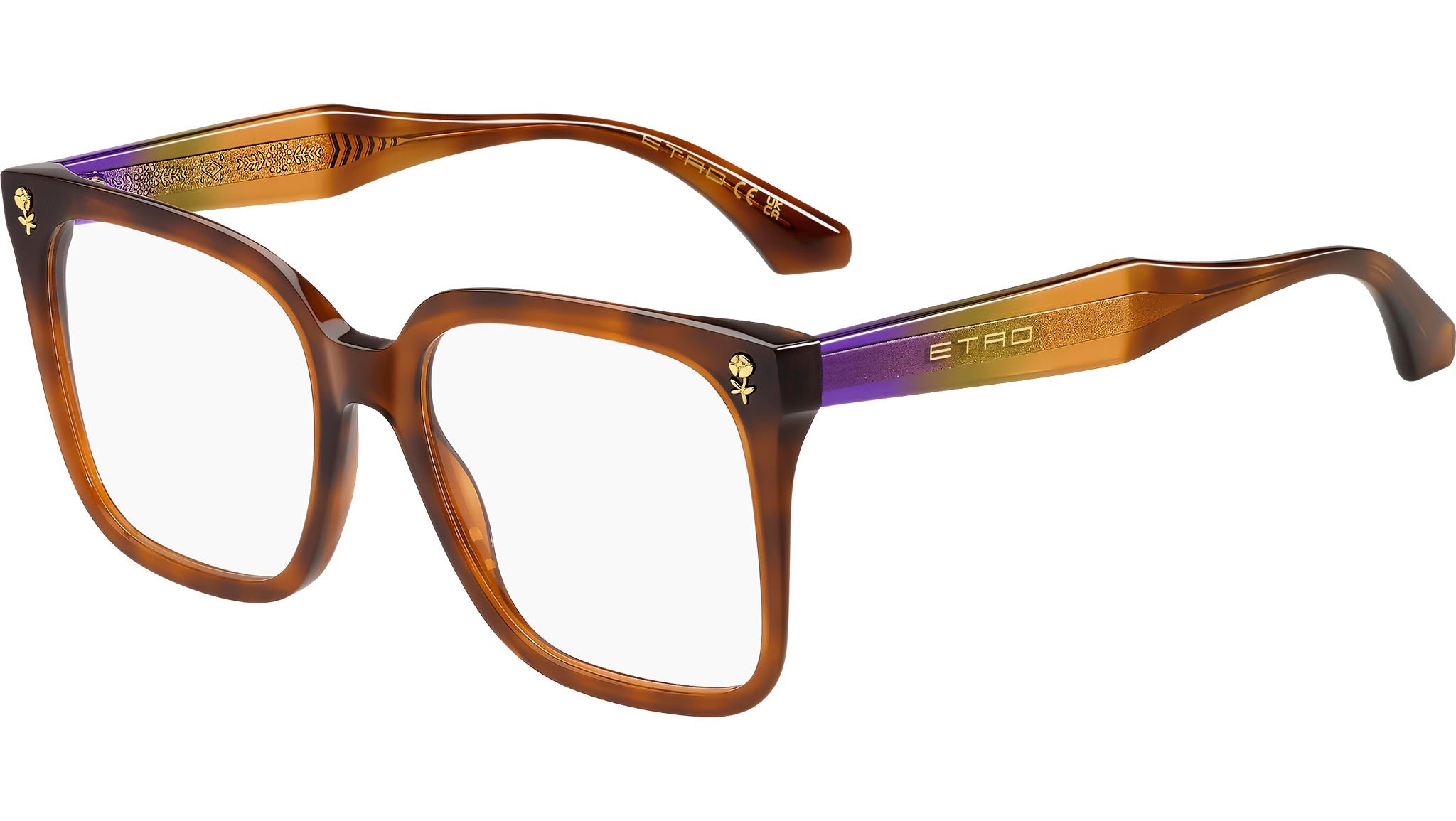 Occhiali da vista Etro 0093 C9B donna con montatura squadrata in acetato avana miele e lenti demo. La collezione eyewear 'Colour Stripes' di ETRO esprime l'anima del brand con occhiali da vista che non passano inosservati. Il frontale in acetato, lavorato con linee moderne e proporzioni equilibrate, è abbinato ad aste geometriche impreziosite da un filo metallico sottile. Dettagli floreali, ispirati all'arte del ricamo, e il logo dorato di ETRO aggiungono un tocco sofisticato. Disponibili in un'ampia gamma di colori, le tonalità piene e il design accattivante delle aste esaltano l’unicità del modello. Linea: Etromania. Codice modello: 109297. Codice colore: C9B. Rivenditore autorizzato Etro online. Gli occhiali vengono consegnati con custodia e accessori originali e sono coperti dalla garanzia ufficiale di 12 mesi del produttore.