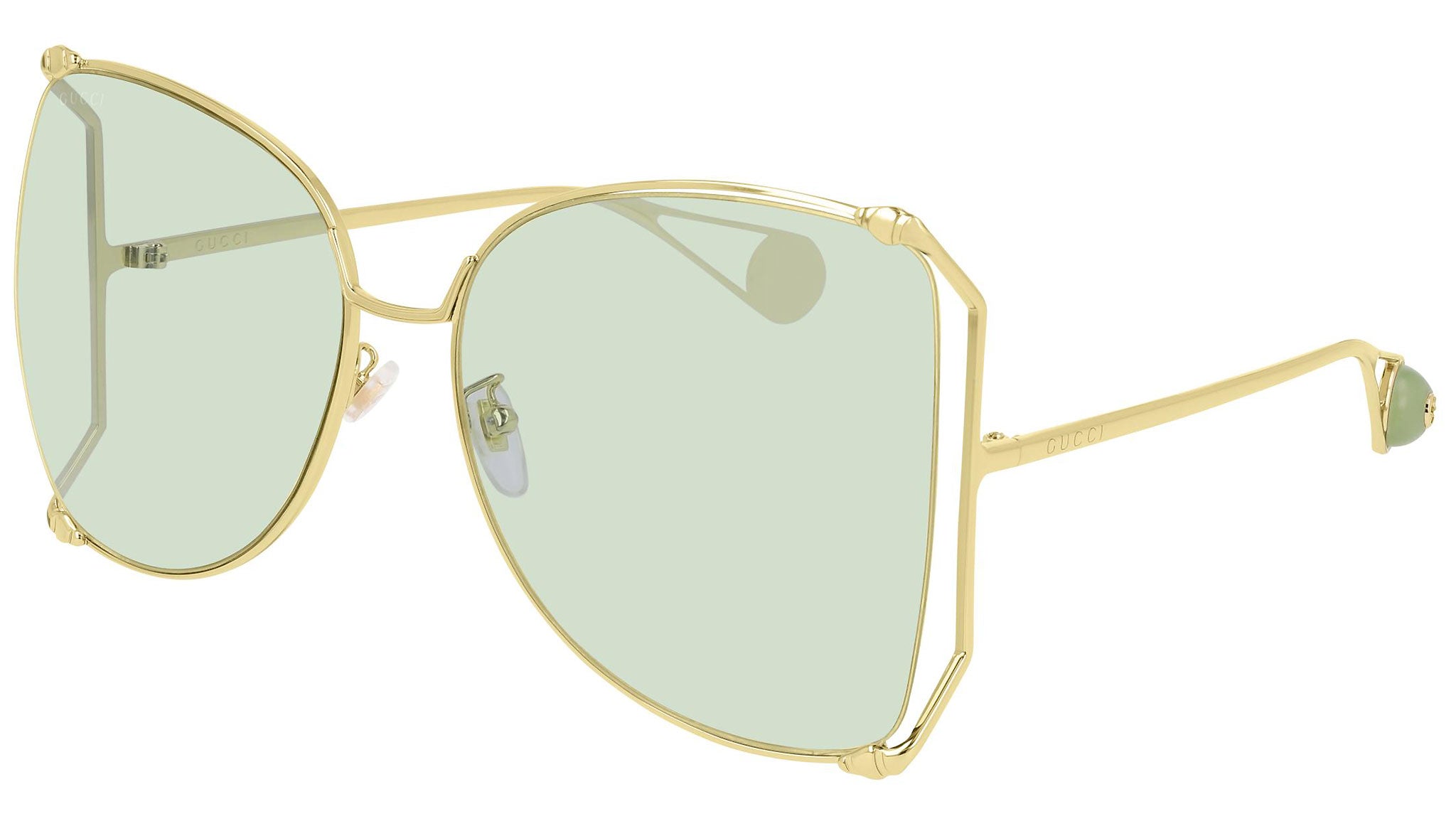 Occhiali da sole Gucci GG0252S 012 con montatura oro endura lucido e lenti color verde chiaro. Eclettici, moderni, romantici: i prodotti Gucci Eyewear rappresentano la punta di diamante dell'artigianalità italiana, in quanto a qualità e attenzione ai dettagli. Innovativo, prestigioso e audace, Gucci sta reinventando un approccio alla moda totalmente moderno. Nella sua nuova vision creativa, la Maison ha redifinito il concetto di lusso per il 21mo secolo.