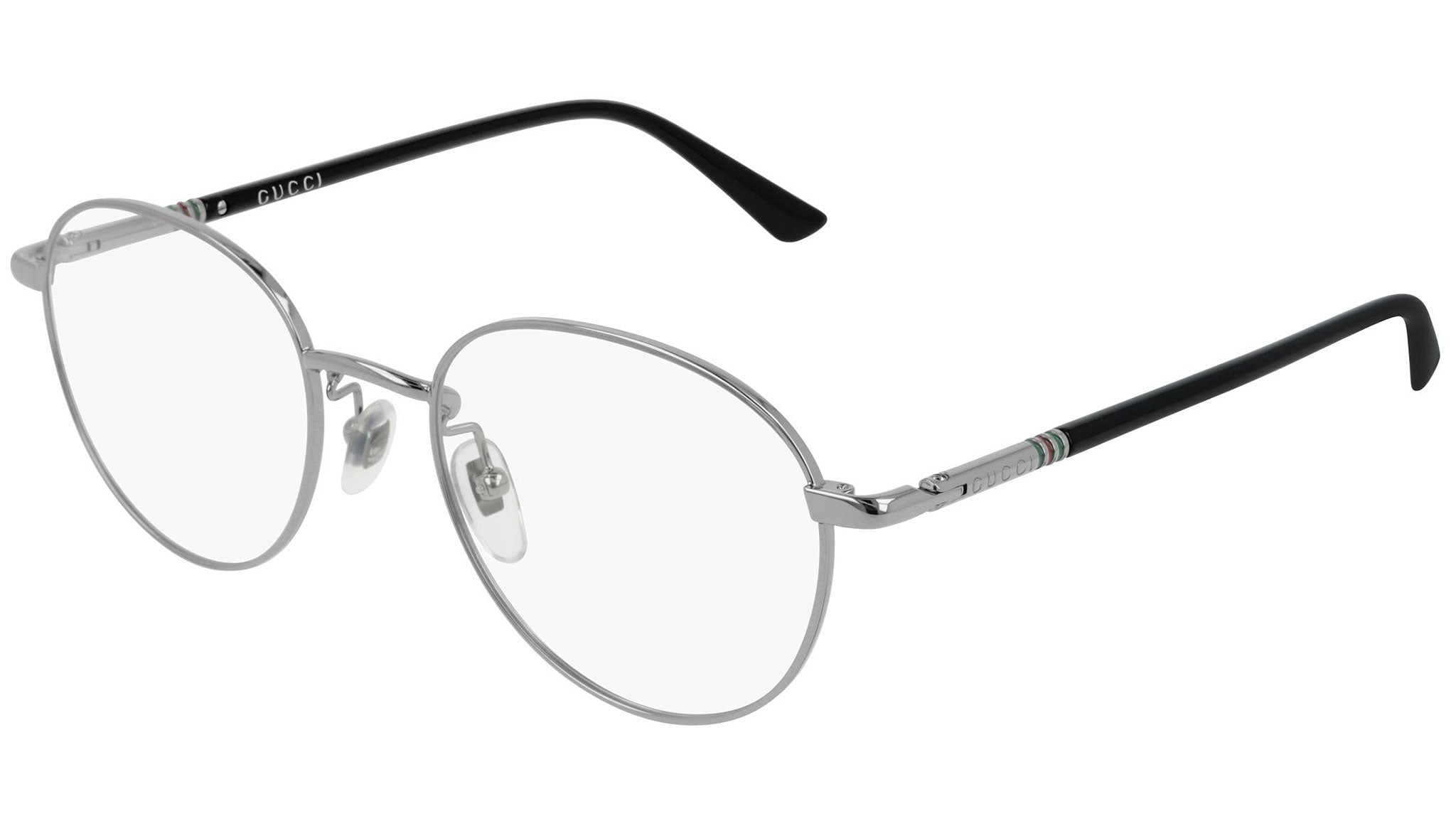 Gucci optical collection model GG0392O 001 featuring shiny ruthenium frame and black temple. Gucci Eyewear offer eclectic and contemporary creations that represent the pinnacle of Italian craftsmanship and are unsurpassed in quality, attention to detail and imaginative design. Buy your frames online and take them to your local optician to fit prescription lenses.