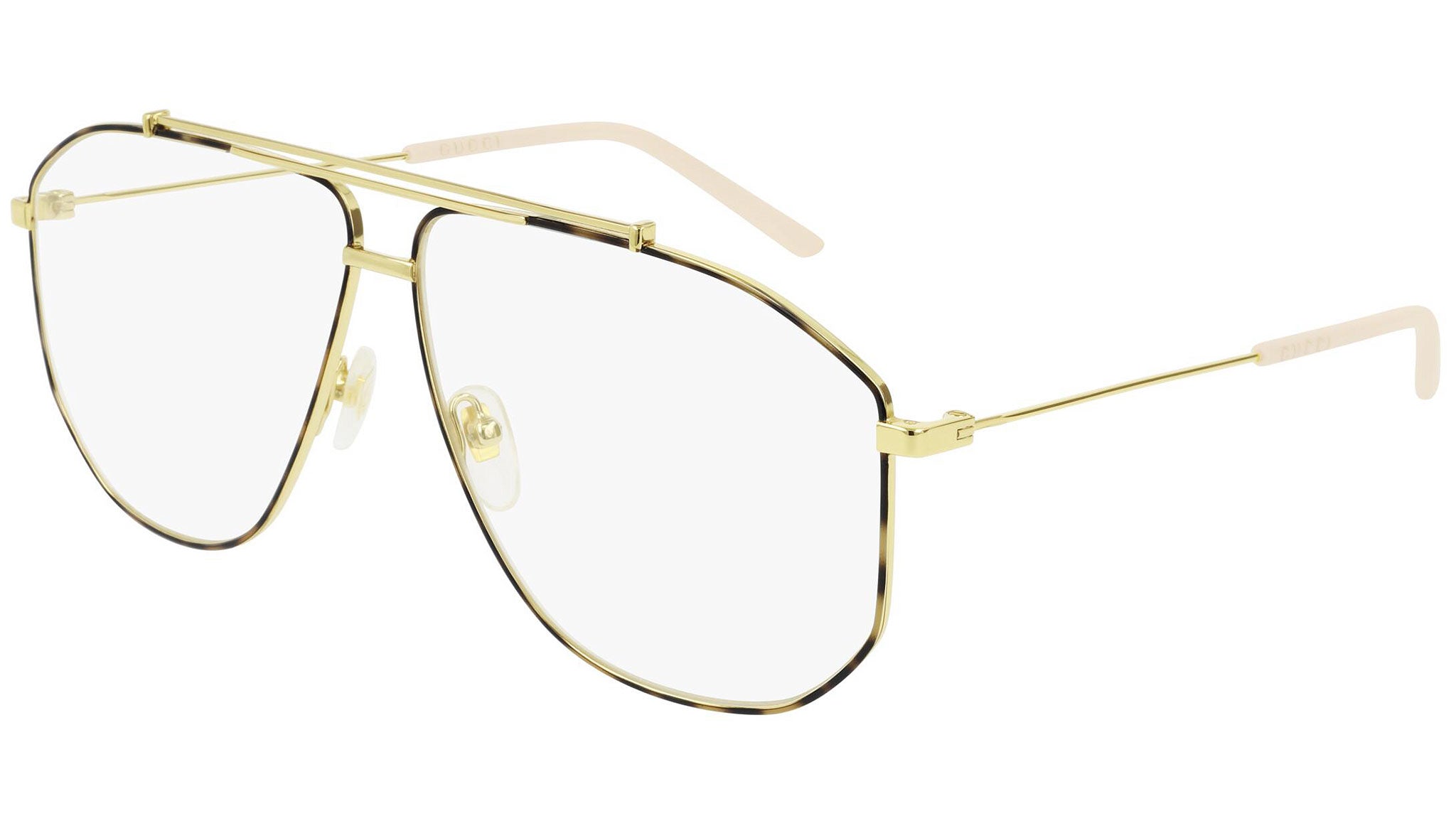 Gucci optical collection model GG0441O 003 featuring shiny endura gold j5g frame and gold temple. Gucci Eyewear offer eclectic and contemporary creations that represent the pinnacle of Italian craftsmanship and are unsurpassed in quality, attention to detail and imaginative design. Buy your frames online and take them to your local optician to fit prescription lenses.
