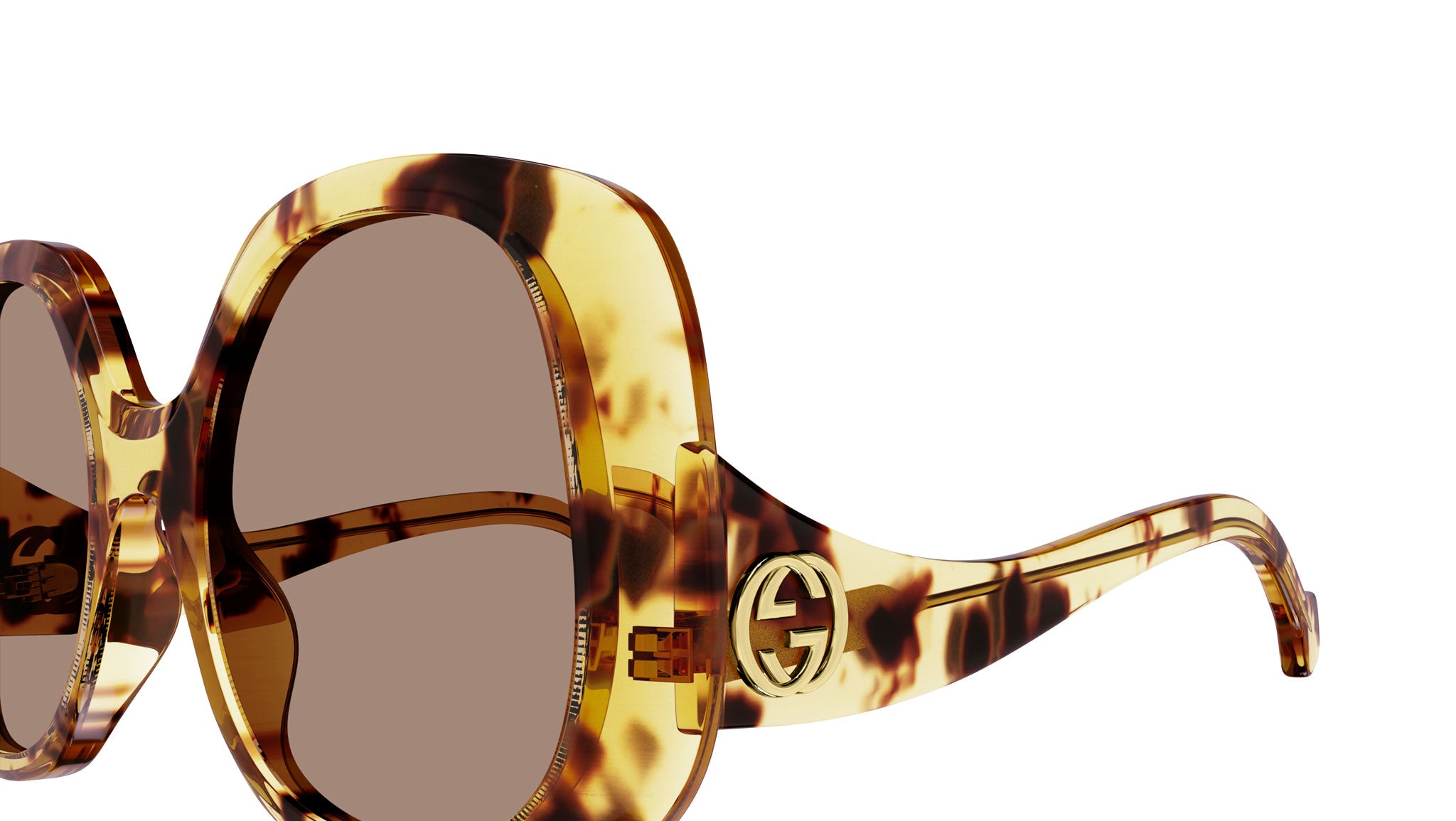 Occhiali da sole Gucci modello GG1235S variante colore 002 avana maculato lucido con lenti color marrone tinta unita.