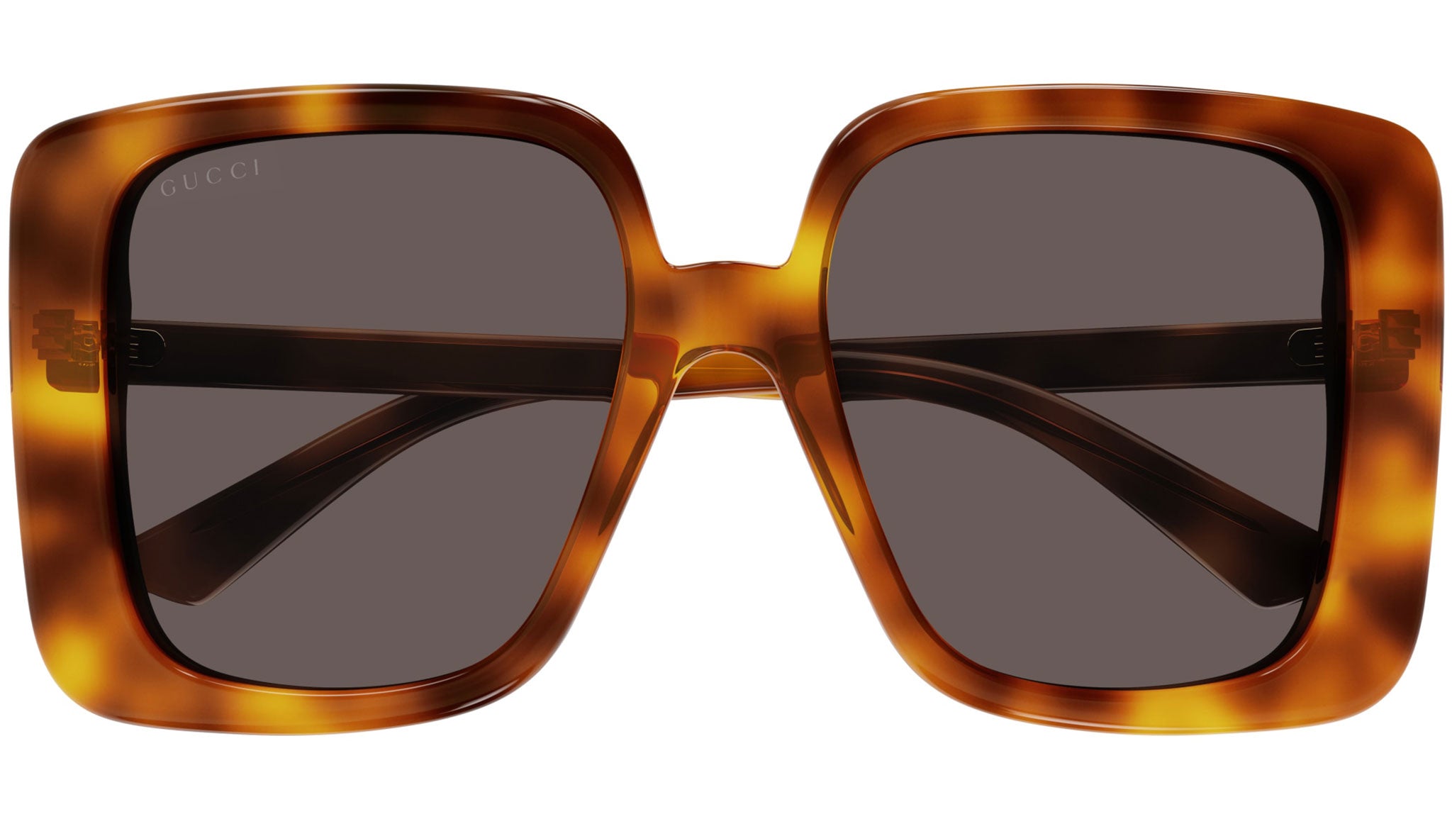 Occhiali da sole Gucci linea Gucci Logo modello GG1314S variante colore 002 avana biondo lucido con lenti color tartaruga.