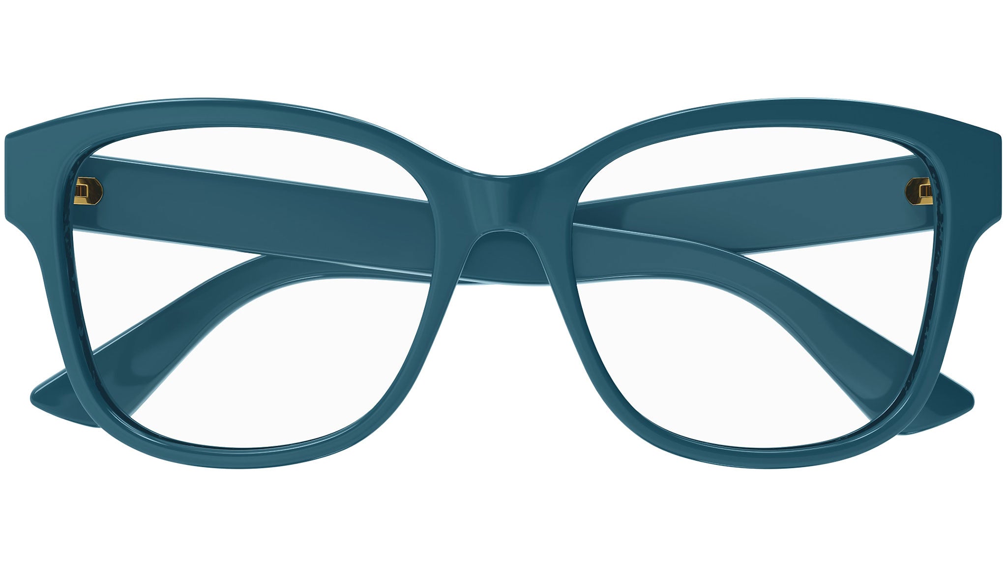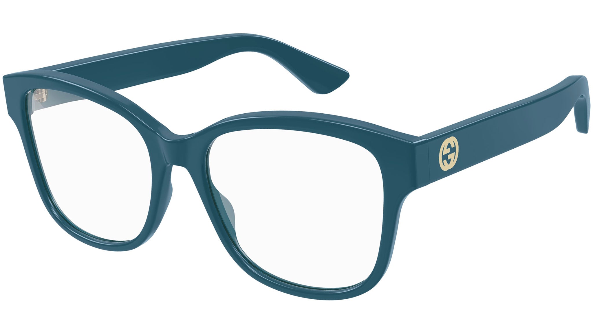 Occhiali da vista linea Gucci Logo modello GG1340O variante colore 003 blu petrolio lucido con astine color blu.