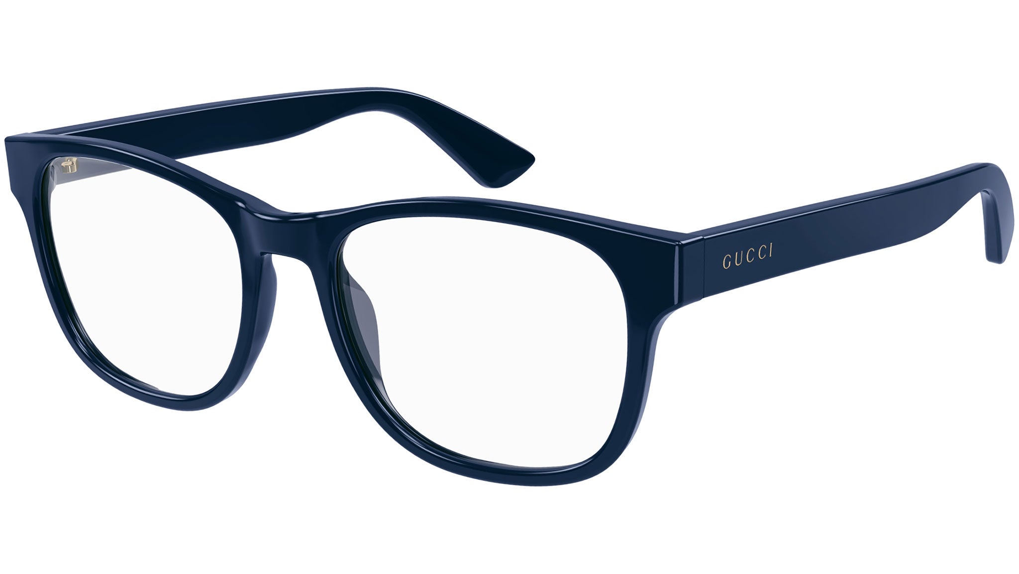 Occhiali da vista linea Gucci Logo modello GG1344O variante colore 007 blu tinta unita lucido con astine color blu.