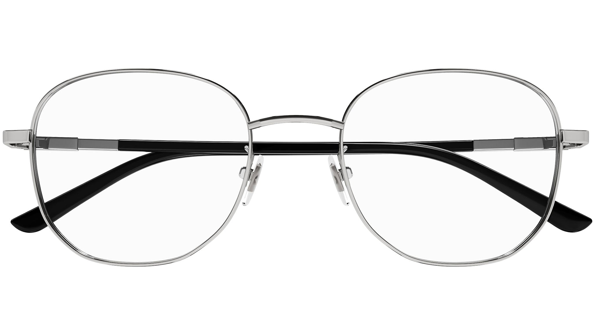Occhiali da vista linea Gucci Logo modello GG1352O variante colore 001 rutenio chiaro lucido con astine color nero.