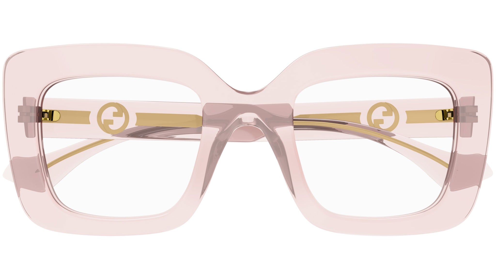 Occhiali da vista Gucci modello GG1554O linea GG Logo in acetato riciclato forma rettangolare codice colore 003 rosa nude trasparente lucido con aste in beige nude e lenti demo. Rivenditore autorizzato Gucci online. Gli occhiali vengono consegnati con custodia e accessori originali e sono coperti dalla garanzia ufficiale di 12 mesi del produttore.