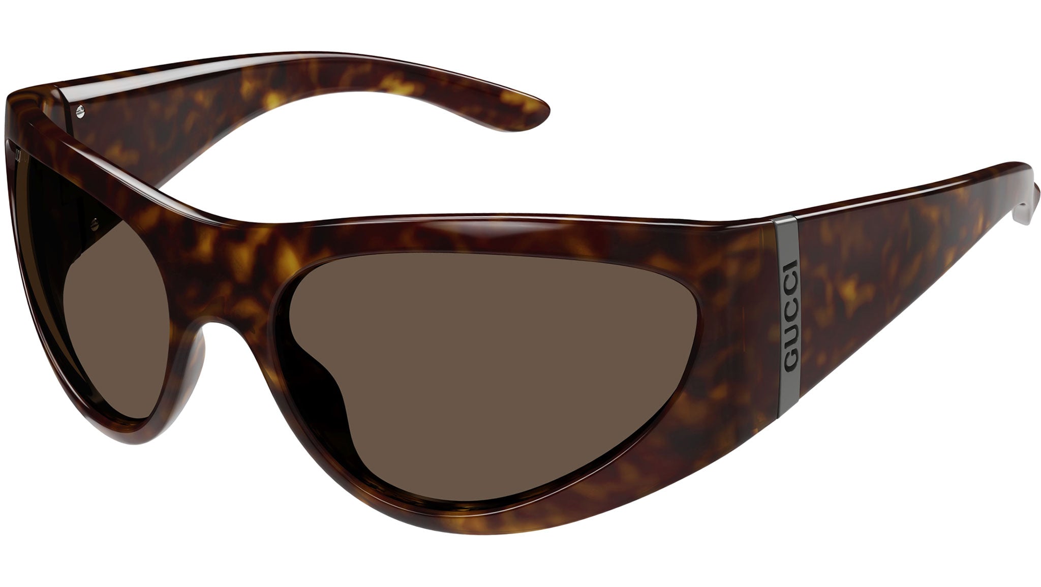 Occhiali da sole Gucci linea Fashion modello GG1575S rettangolari in iniettato codice colore 002 tartaruga scuro lucido con aste tartaruga e lenti color marrone tinta unita.