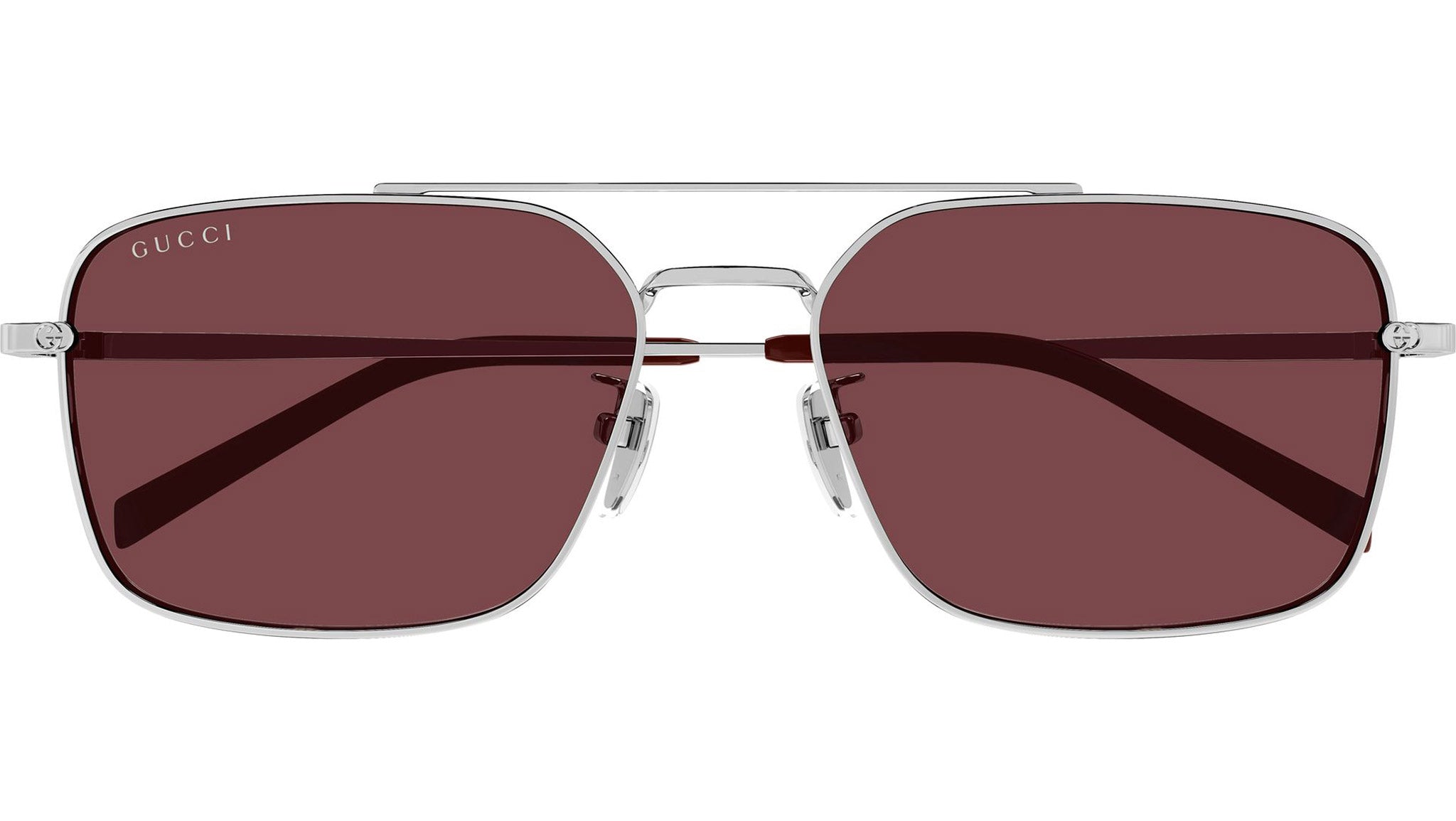 Occhiali da sole Gucci GG1957SA 004 uomo con montatura rettangolare in metallo argento lucido e lenti borgogna tinta unita in bio nylon. Linea: Institutional Logo. Codice modello: GG1957SA. Codice colore: 004. Made in Japan. Rivenditore autorizzato Gucci online. Gli occhiali vengono consegnati con custodia e accessori originali e sono coperti dalla garanzia ufficiale di 12 mesi del produttore.