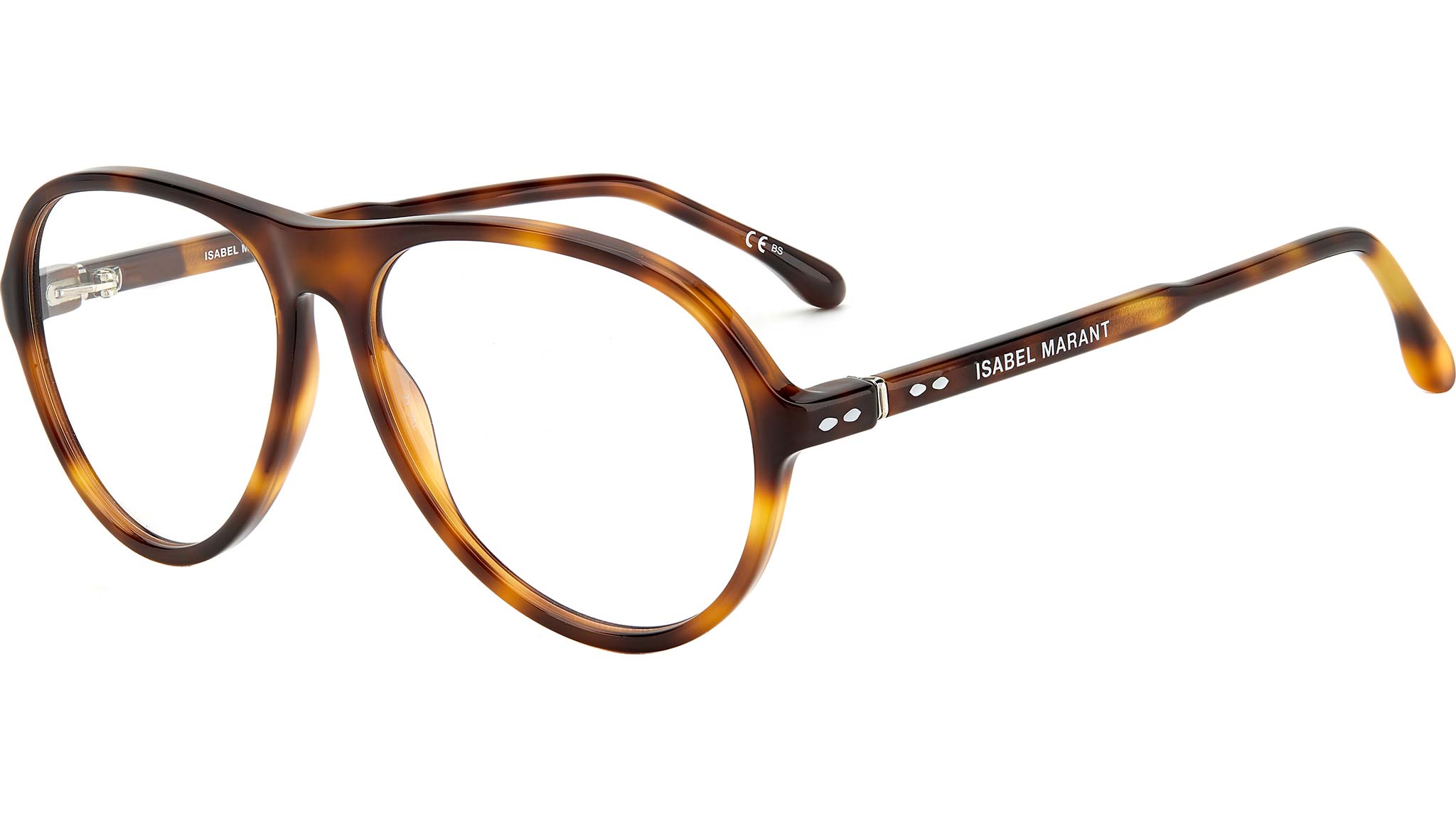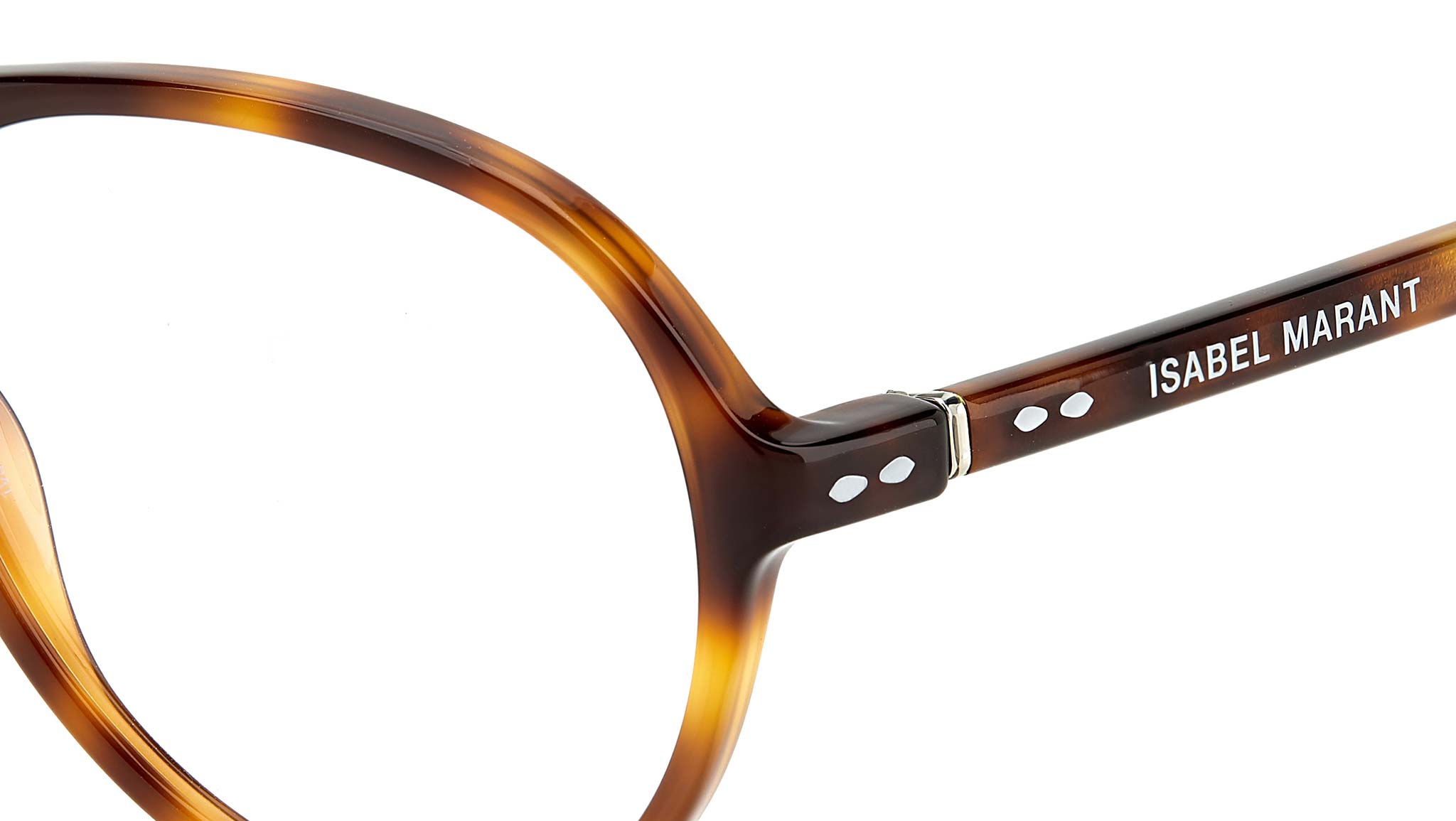 Pop shades and playful attitude: the In Love eyewear collection from Isabel Marant spices up a range of distinctive shapes with fresh, statement tones. Standing out with a modern pilot silhouette, these acetate optical glasses are enhanced with a sophisticated metal detail on the hinge and a logo on the left temple. Finished with leaf-shaped rivets and end tips to reinforce the brand’s signature style codes.