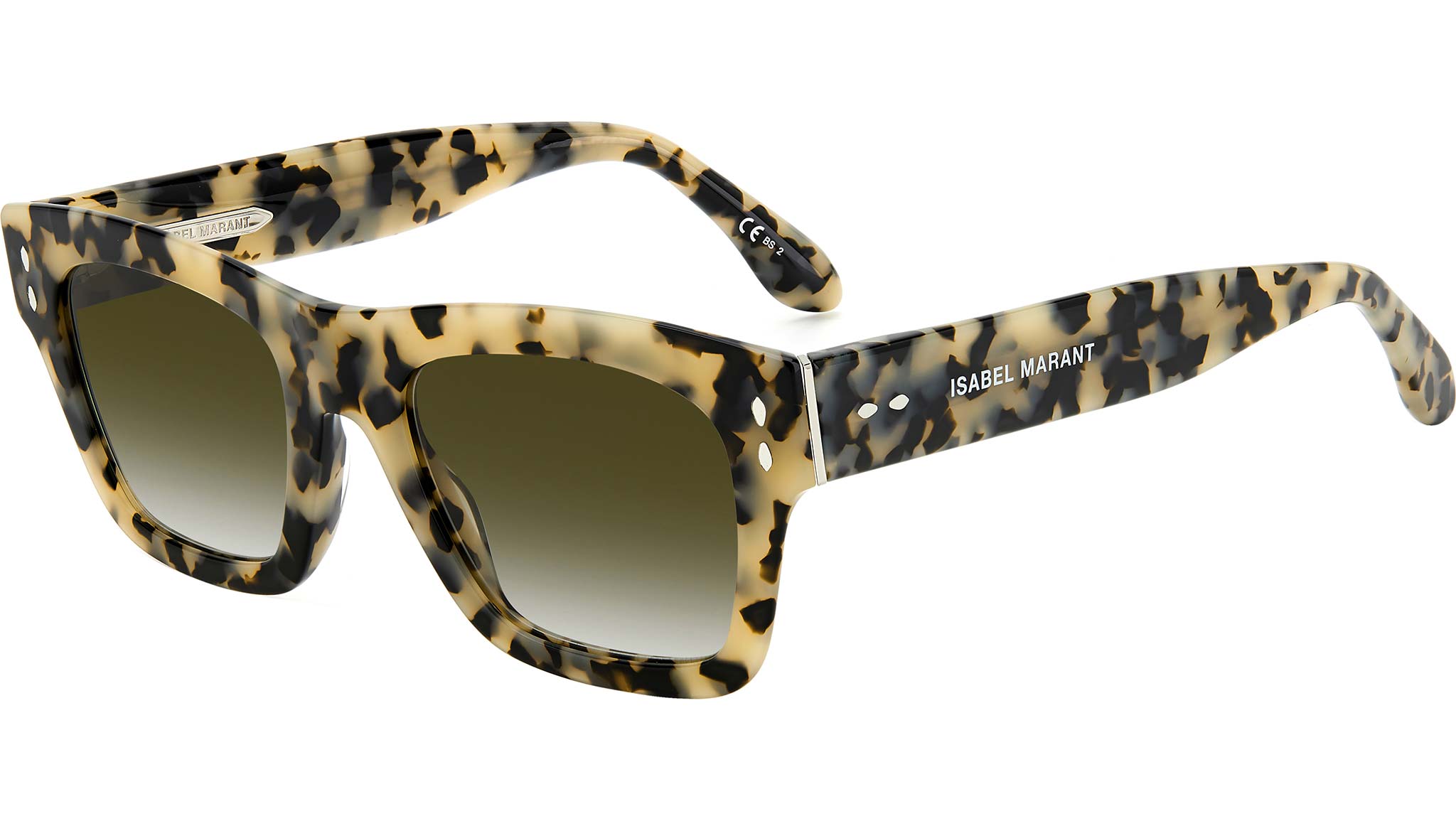 Bold and eye-catching, yet effortlessly lightweight: Isabel Marant’s New eyewear collection comprises a range of ultra-flat frames, spanning feminine colourways inspired by the brand's RTW line. Crafted from acetate with sleek metal temple cores, these rectangular sunglasses are distinguished by a luxurious metal detail on the hinge. Finished with shaped temple tips and metal rivets in celebration of the brand’s signature leaf detail.