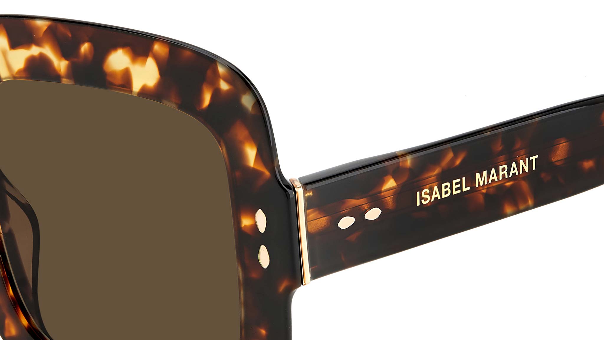Bold and eye-catching, yet effortlessly lightweight: Isabel Marant’s New eyewear collection comprises a range of ultra-flat frames, spanning feminine colourways inspired by the brand's RTW line. Flaunting an oversized square profile, these sunglasses update a classic acetate design with sleek metal temple cores and a luxurious metal detail on the hinge. Elevated with shaped temple tips and metal rivets in celebration of Isabel Marant’s signature leaf detail.