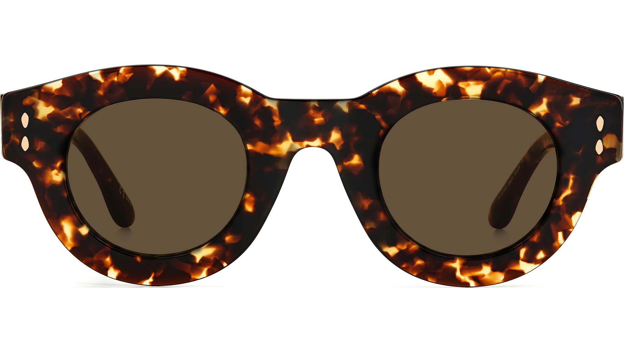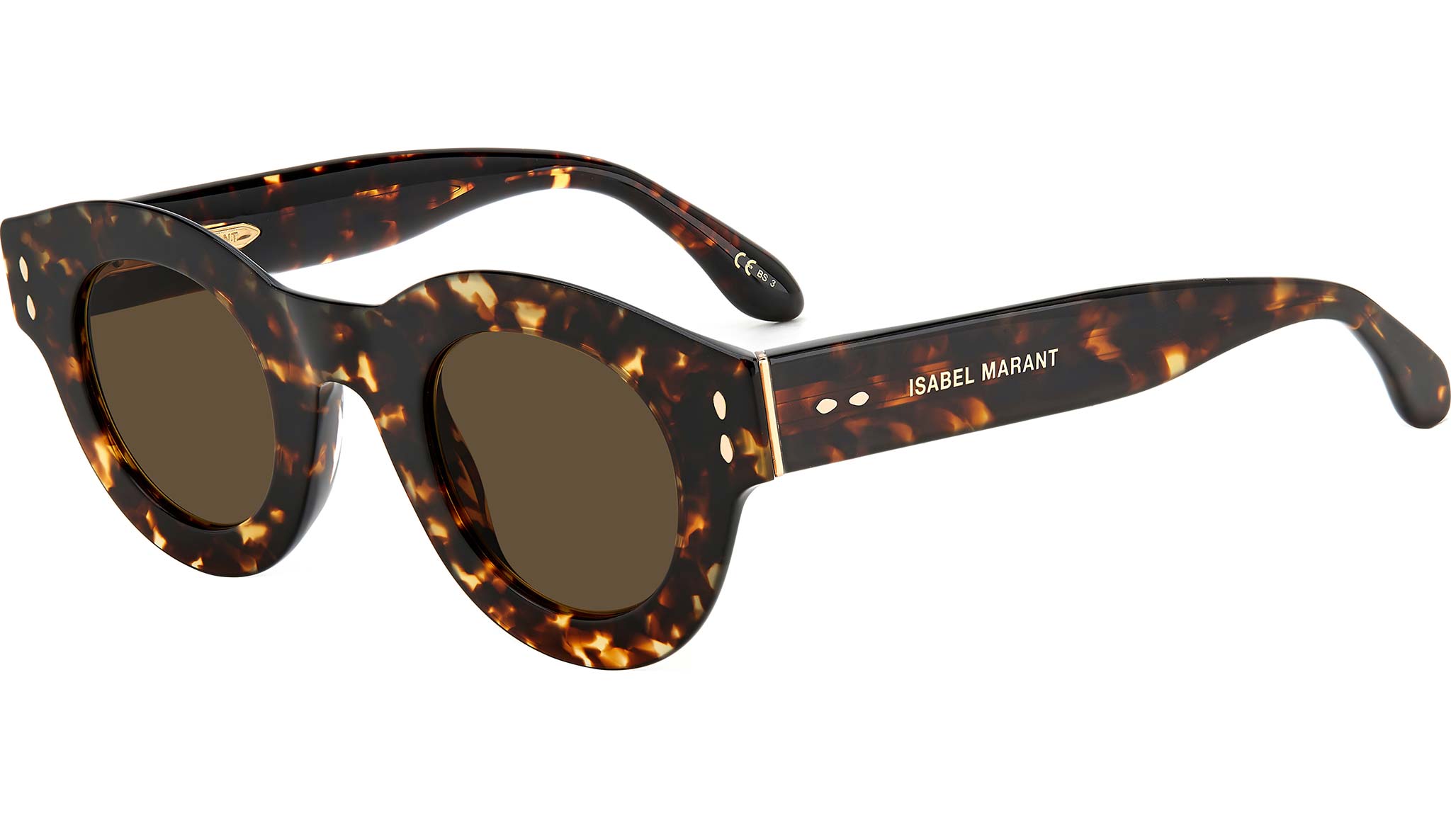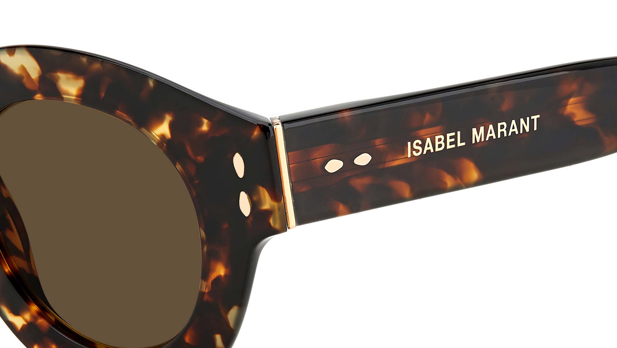 Bold and eye-catching, yet effortlessly lightweight: Isabel Marant’s New eyewear collection comprises a range of ultra-flat frames, spanning feminine colourways inspired by the brand's RTW line. Flaunting a chic pantos silhouette, these sunglasses enrich a timeless acetate style with metal temple cores and a luxurious metal accent on the hinge. Shaped temple tips and metal rivets pay tribute to Isabel Marant’s signature leaf detail.