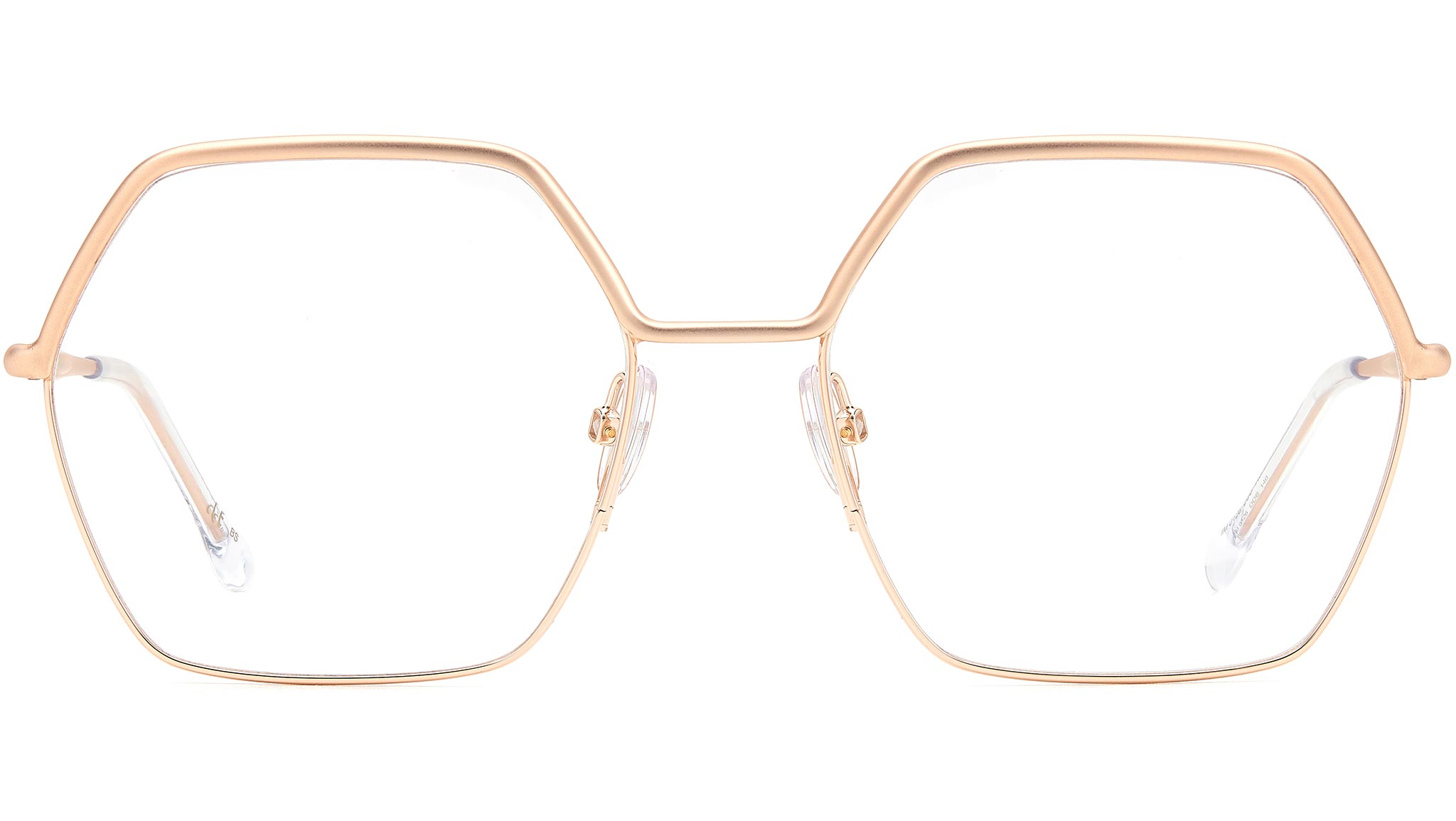 Occhiali da vista Isabel Marant modello IM 0126 codice colore DDB Gold Copper con lenti demo. Eleganza quotidiana con l'eyewear Wild Metal di Isabel Marant. Le silhouette della collezione si ispirano al carattere easy ed essenziale del brand, offrendo una selezione di montature in metallo dalle linee leggere e minimali. Questi occhiali da vista presentano una forma esagonale, con naselli regolabili per un comfort ottimale. I dettagli tridimensionali sulle aste e sui terminali richiamano il motivo a foglia del brand, mentre il logo inciso al laser aggiunge un tocco esclusivo al modello.