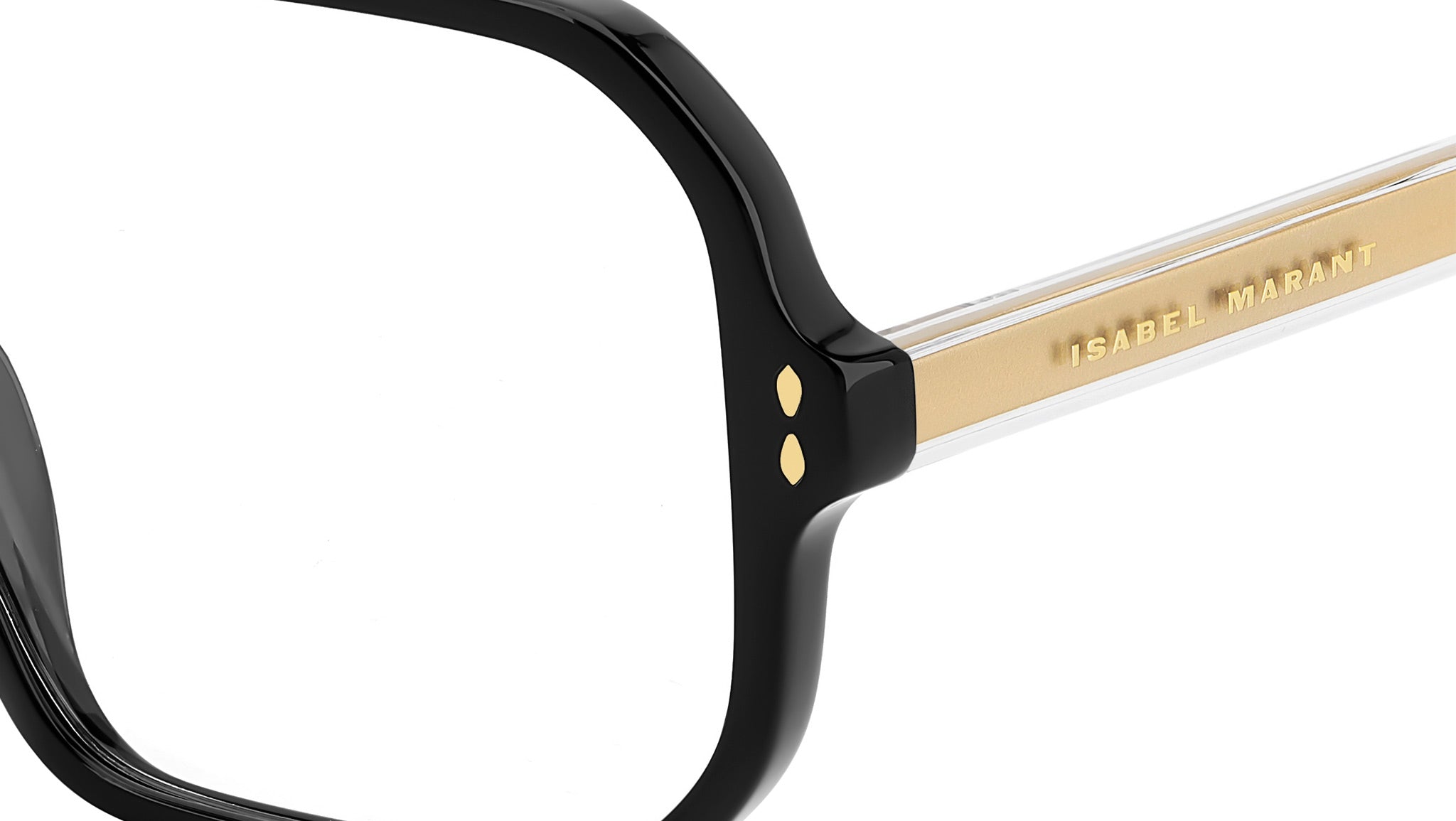 Occhiali da vista Isabel Marant IM 0168 2M2 donna con montatura quadrata in acetato oro nero e lenti demo. La collezione eyewear "The In Love" di Isabel Marant esprime lo spirito tecnicolor del brand attraverso aste trasparenti con un'anima in metallo, dall'appeal fresco e contemporaneo. Realizzate in acetato, queste montature da vista sfoggiano una forma squadrata oversize che fonde un'allure moderna con note retrò. Gli iconici rivetti e terminali sagomati a forma di foglia richiamano i codici stilistici del brand, mentre il lettering logo sull'asta sinistra completa il design esclusivo. Linea: The In Love. Codice modello: 108450. Codice colore: 2M2. Rivenditore autorizzato Isabel Marant online. Gli occhiali vengono consegnati con custodia e accessori originali e sono coperti dalla garanzia ufficiale di 12 mesi del produttore.