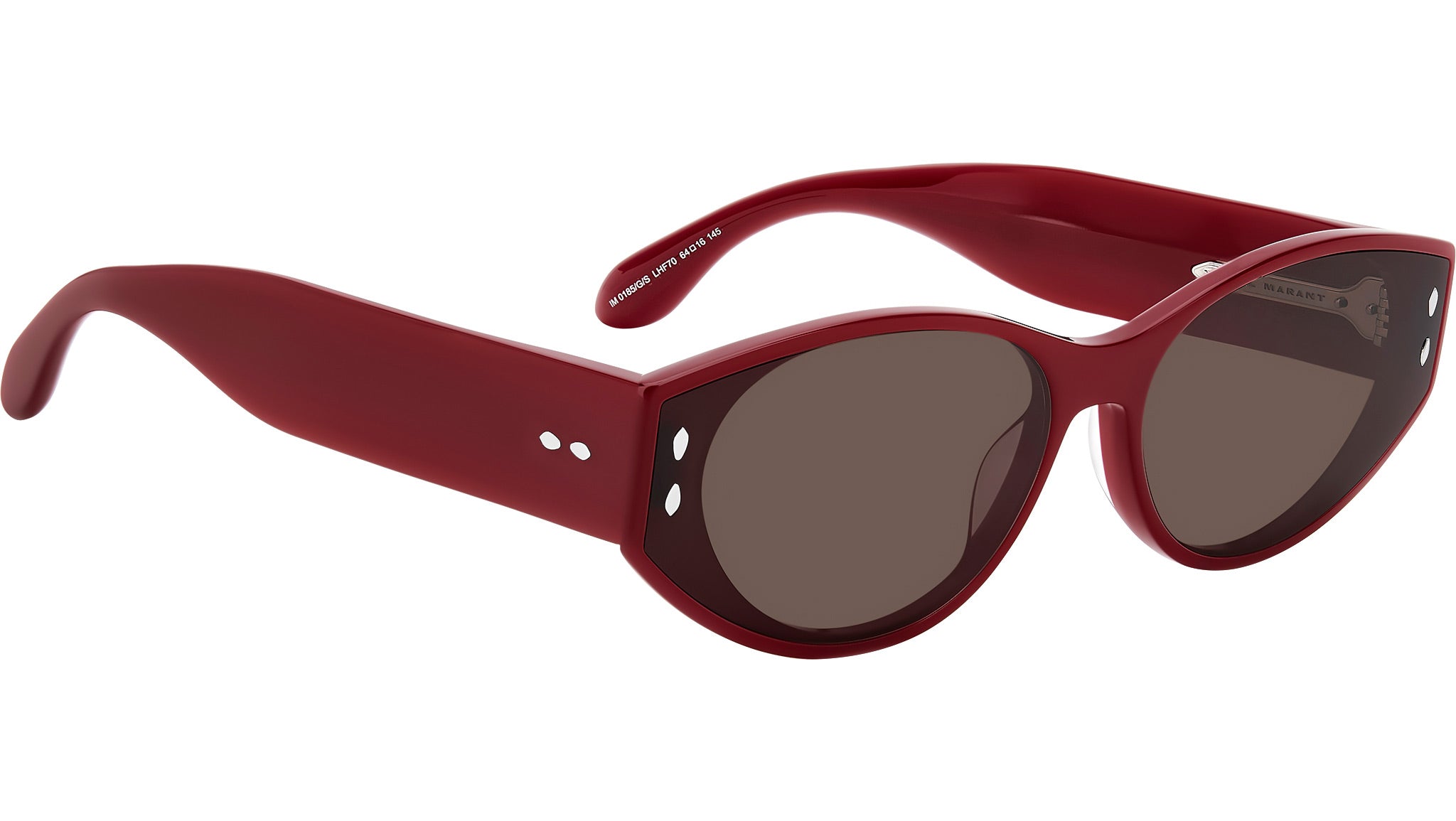 Occhiali da sole Isabel Marant IM 0185/G/S LHF 70 donna con montatura ovale in acetato bordeaux e lenti marrone. Scopri l'eleganza senza tempo della collezione eyewear "The New" di Isabel Marant, caratterizzata da una struttura ultra-flat modernizzata con lenti a filo per un raffinato effetto doppio telaio. Questi occhiali da sole in acetato sfoggiano una seducente silhouette ovale con aste maxi per un look d'impatto, arricchiti da terminali sagomati e rivetti argentati, omaggio all'iconico motivo a foglia del brand. Disponibili in una selezione di tonalità sofisticate e facili da indossare, perfette per un'eleganza quotidiana senza sforzo. Linea: The New. Codice modello: 207582. Codice colore: LHF 70. Rivenditore autorizzato Isabel Marant online. Gli occhiali vengono consegnati con custodia e accessori originali e sono coperti dalla garanzia ufficiale di 12 mesi del produttore.
