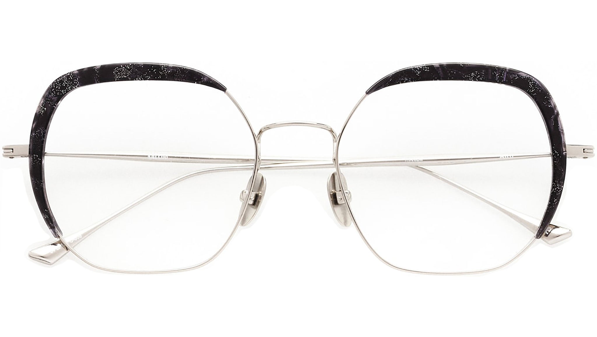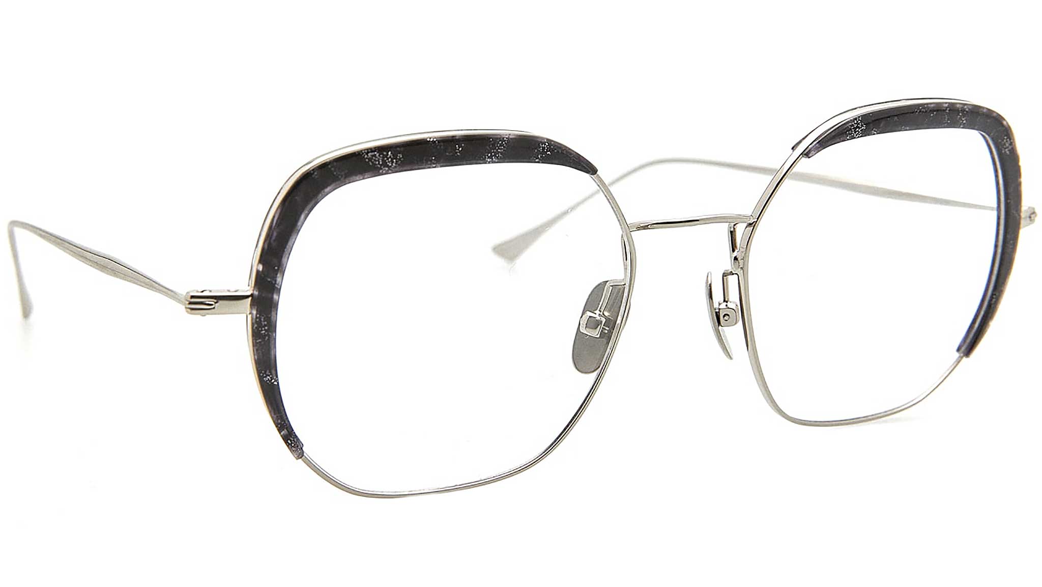 Le montature da vista in acetato e titanio Aird 6 di Kaleos rappresentano un lussuoso connubio tra moda e innovazione. Le montature monocromatiche nere opache sono impreziosite dal profilo e dal ponte in titanio color oro e dalle aste in titanio. Le placchette nasali e le aste sono regolabili per garantire una perfetta aderenza. Realizzati a mano con materiali di alta qualità e complesse lavorazioni, questi occhiali unici combinano gusto contemporaneo e funzionalità.