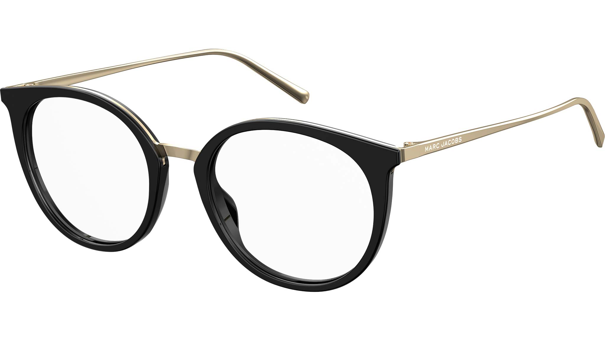 These sophisticated women’s eyeglasses strike just the right balance of modern sensibility and timeless allure. The superbly feminine, rounded cat-eye profile combines full-rim acetate frames with tapered steel arms engraved with the Marc Jacobs signature. A refined mix of materials and an understated color palette stay true to the designer’s youthful sense of confidence.
