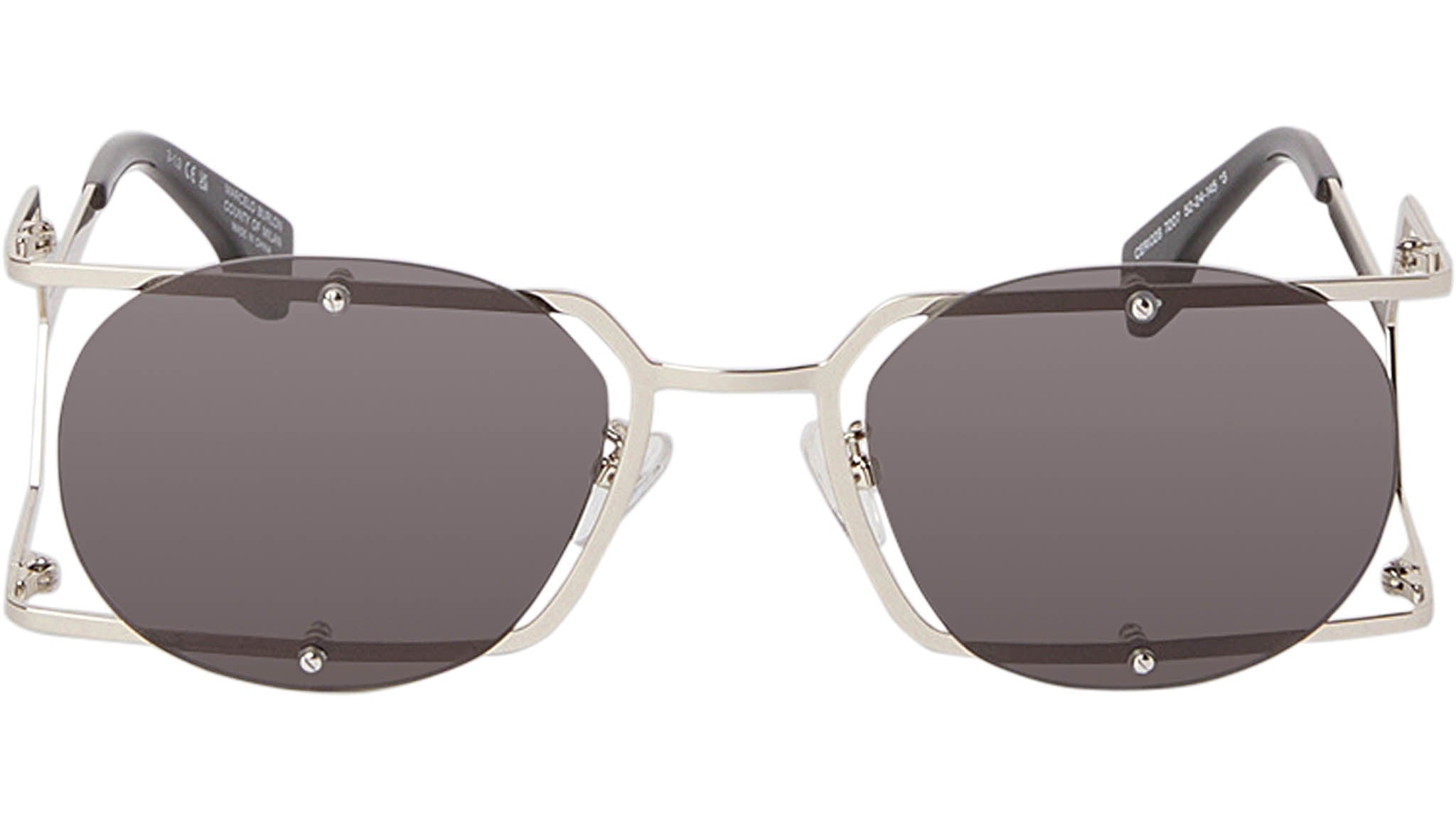 Mutisia di Marcelo Burlon County of Milan trae ispirazione da influenze industriali, miscelate con una moderna leggerezza, raggiunta attraverso una struttura metallica sottile. La silhouette degli occhiali da sole crea un gioco di geometrie che sostengono le lenti ovali. Le aste in metallo sono arricchite da terminali in acetato che caratterizzano il logo del brand e conferiscono a questo modello un aspetto futuristico.
