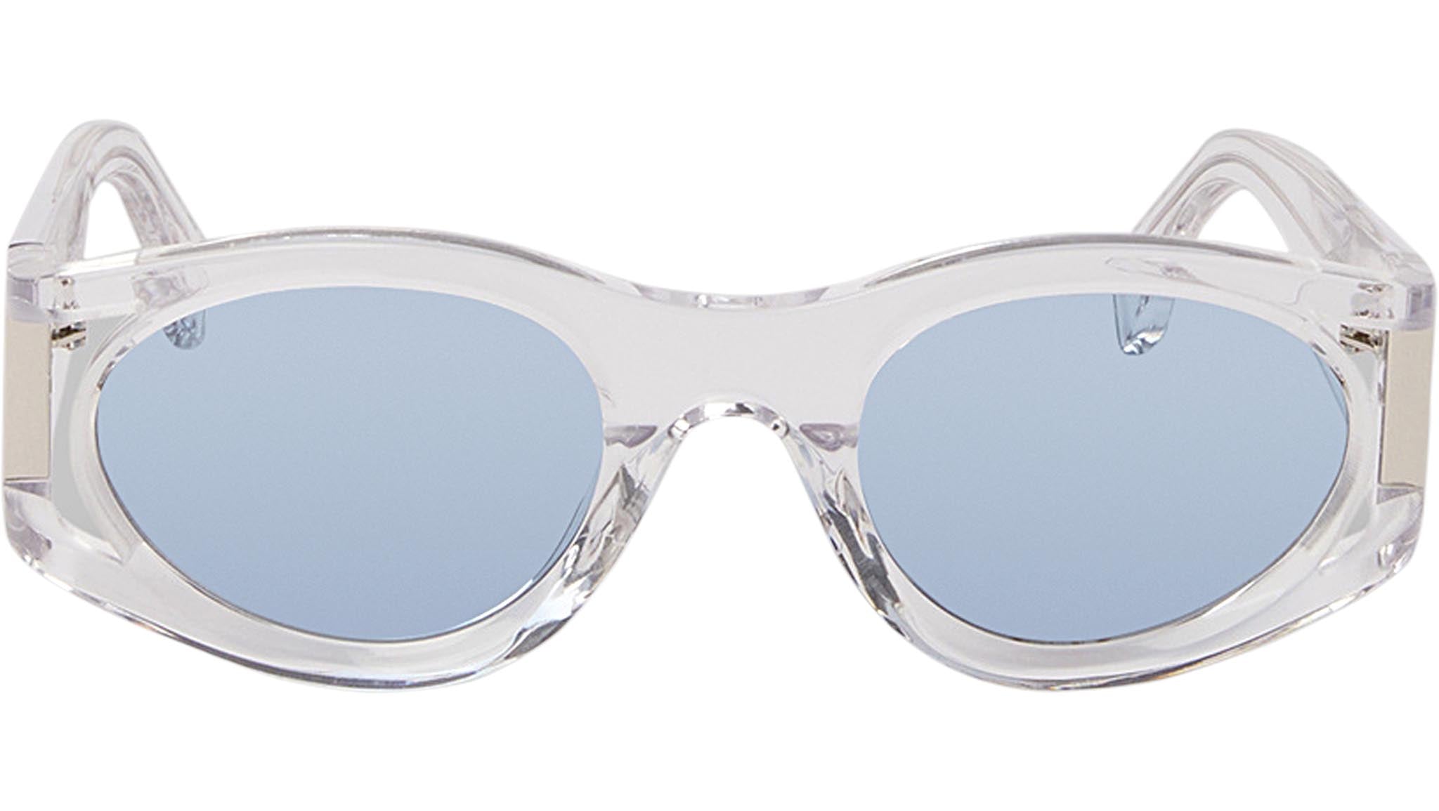 Pasithea di Marcelo Burlon County of Milan è un occhiale da sole ovale, geometrico, dall'aspetto scultoreo, che strizza l’occhio alla scena clubbing dei primi anni 2000. Le aste sono collegate al frontale tramite un'unica cerniera cut-out per un tocco non convenzionale. La proposta di colori comprende due opzioni classiche, bianco e nero, e due più divertenti, nero effetto marmo con lenti blu o montatura viola sognante.
