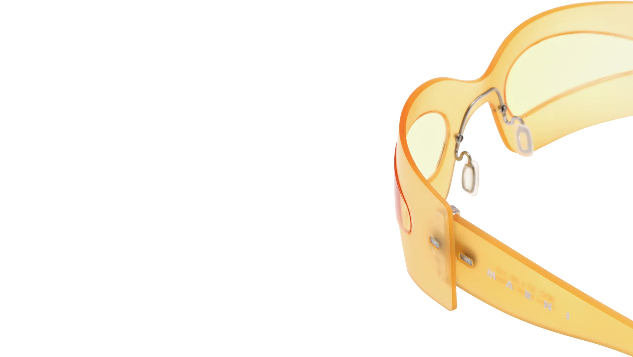 Designed exclusively for Marni, this genderless design underlines RSF’s ultra lightweight and flexible Tuttolente technology. Working with unique wrap-around shields which delicately embrace your face, the low riding silhouette reveals only the essential and functional structure for a one of a kind design. The frontal frame as well as temples are entirely made from the highest quality of nylon by Carl Zeiss, which have been given a sleek matte finish, while the two oval lens shapes remain clear for an optimal vision. This version of the Yuma Gardens is available in a soft eggnog yellow. Sizes: R Lens Width: 51 mm. Frame Front: Frame Side: 115 mm. Product Code Size R: 9DC