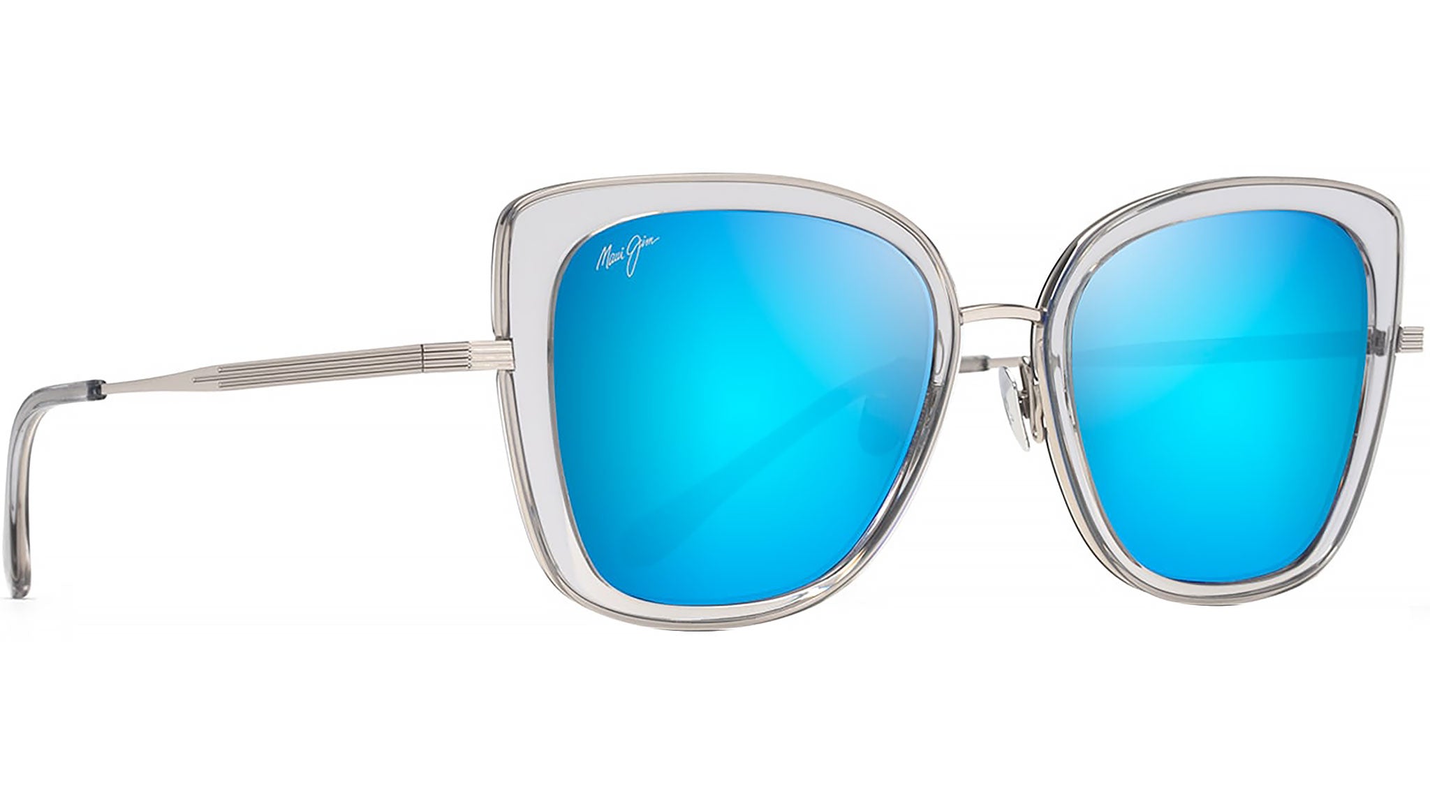 Occhiali da sole Maui Jim modello B843 Violet Lake colore 11 Translucent Grey / Silver con lente polarizzata MauiBrilliant™ blue hawaii. La tecnologia PolarizedPlus2® va oltre la protezione degli occhi dal riverbero e dai raggi UV nocivi, per rivelare ed esaltare i veri colori vividi del mondo, i tutti i loro dettagli.