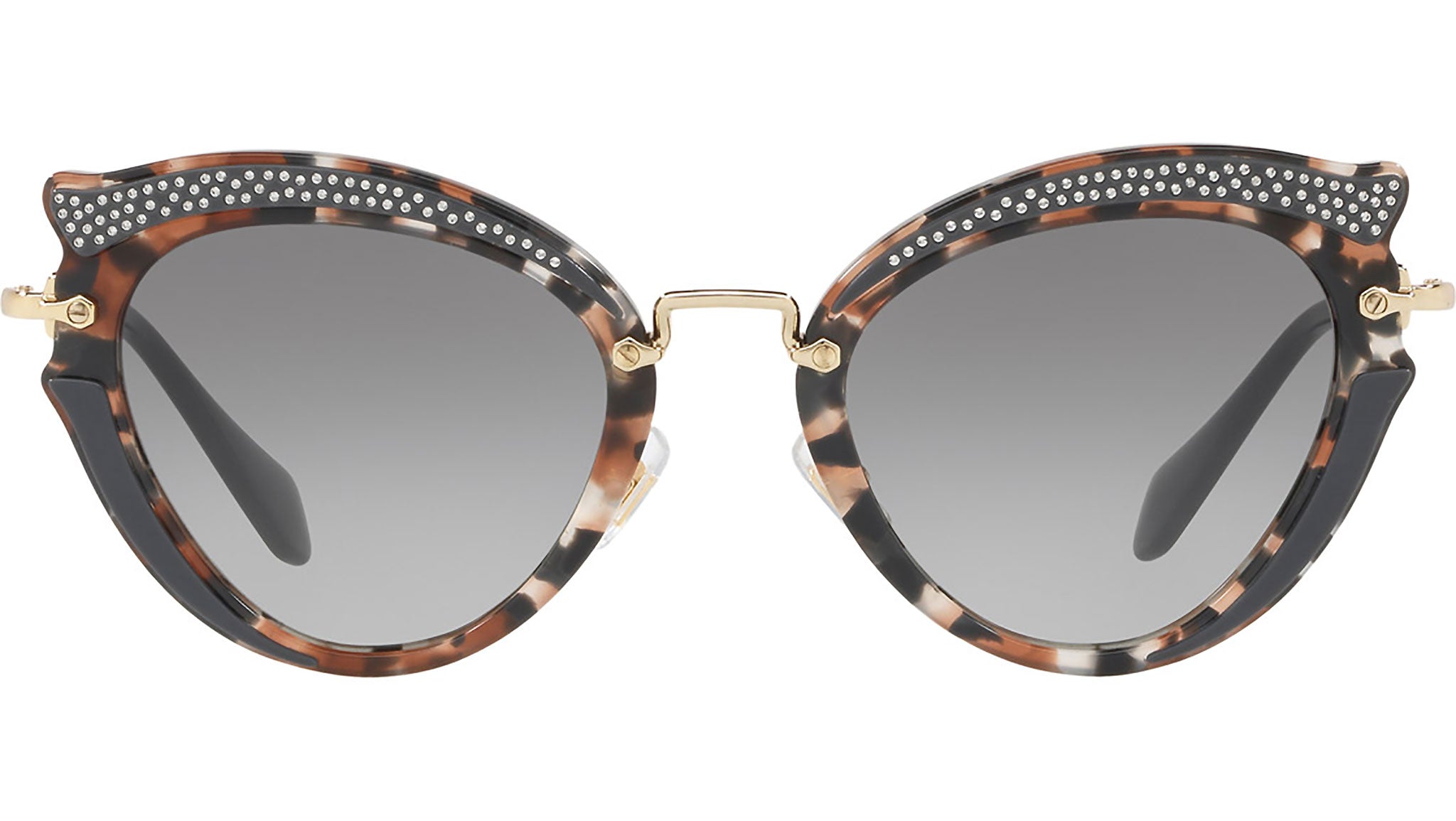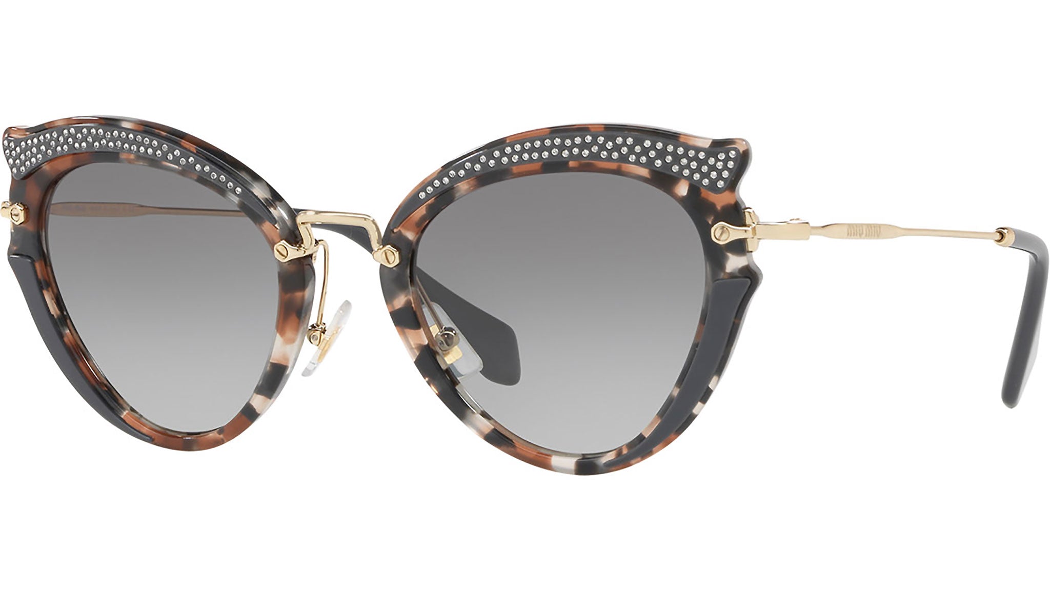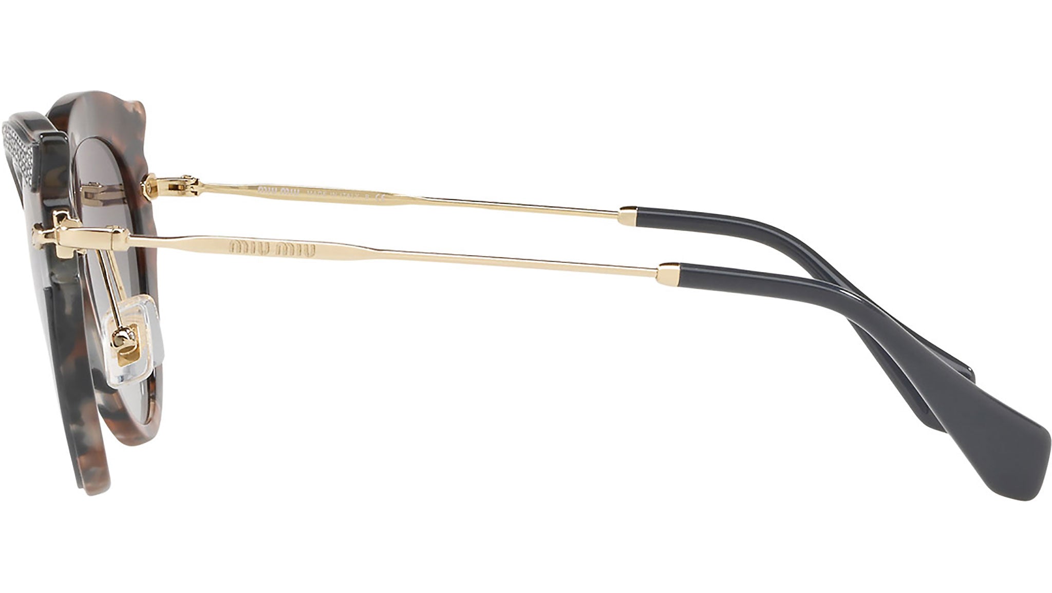 Occhiali da sole Miu Miu modello MU 70US variante colore 79A3M1 avana grigio / marrone, con lenti color grigio sfumato. Miu Miu offre creazioni uniche, in cui la costante ricerca stilistica si combina perfettamente con la maestria artigianale della lavorazione. Le silhouette femminili e sinuose delle montature sono espressione di una ricchezza dei dettagli che rispecchia pienamente i codici stilistici e l’indiscusso talento del brand nell’unire il design non convenzionale ad un romanticismo dai rimandi retrò.