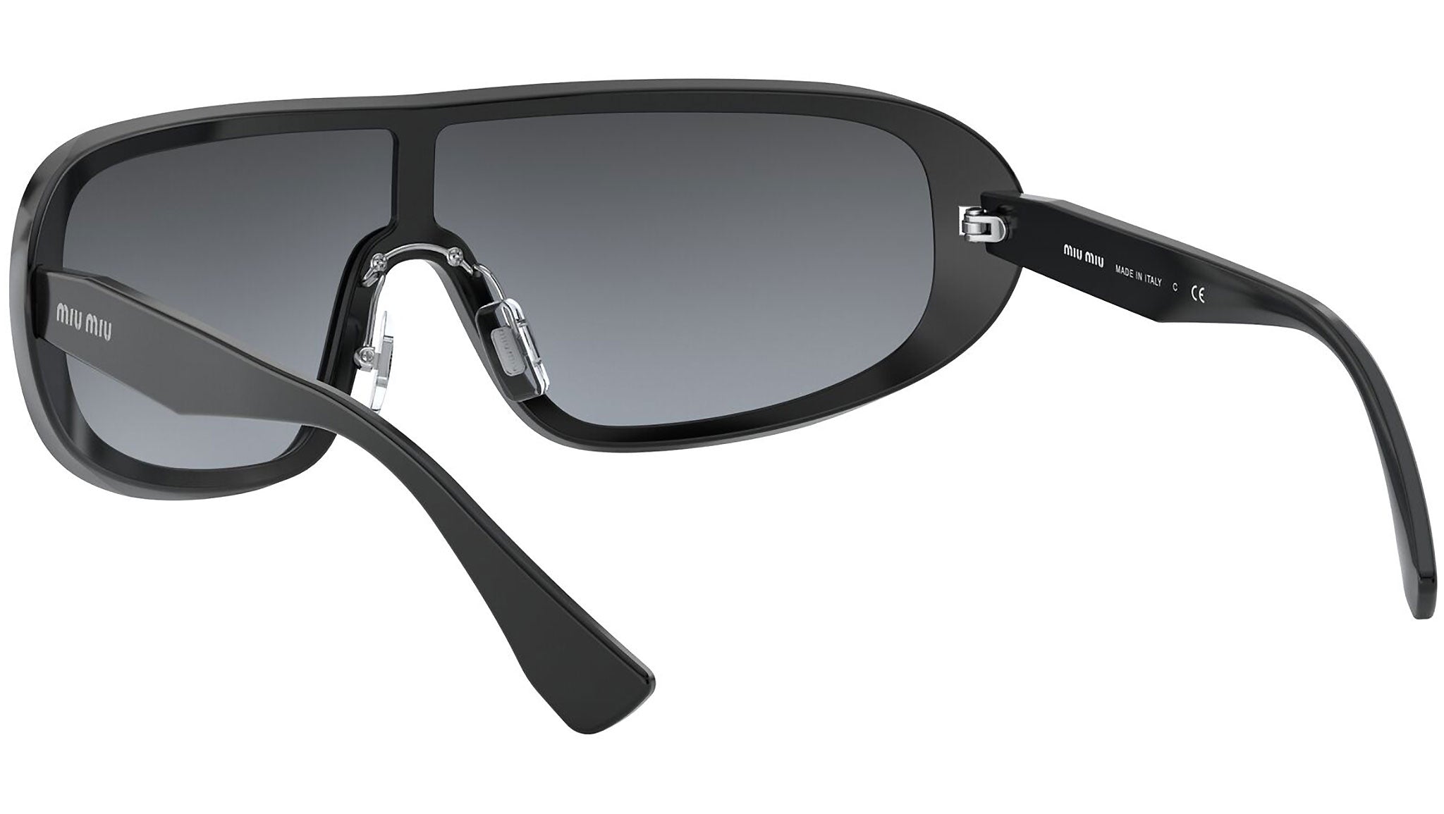 Occhiali da sole Miu Miu modello MU 06VS variante colore 1AB1B0 nero, con lenti color grigio a specchio argento sfumato. Miu Miu offre creazioni uniche, in cui la costante ricerca stilistica si combina perfettamente con la maestria artigianale della lavorazione. Le silhouette femminili e sinuose delle montature sono espressione di una ricchezza dei dettagli che rispecchia pienamente i codici stilistici e l’indiscusso talento del brand nell’unire il design non convenzionale ad un romanticismo dai rimandi retrò.