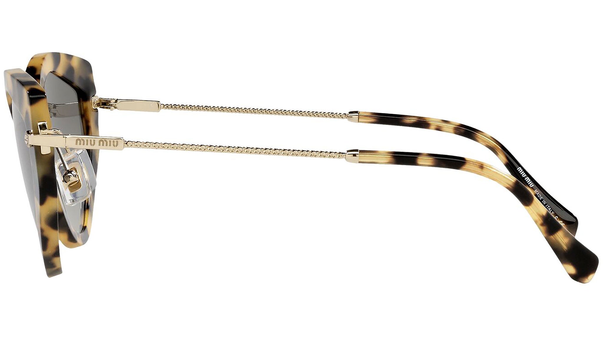 Occhiali da sole Miu Miu modello MU 08XS variante colore 7S00A7 avana chiaro, con lenti color grigio sfumato. Miu Miu offre creazioni uniche, in cui la costante ricerca stilistica si combina perfettamente con la maestria artigianale della lavorazione. Le silhouette femminili e sinuose delle montature sono espressione di una ricchezza dei dettagli che rispecchia pienamente i codici stilistici e l’indiscusso talento del brand nell’unire il design non convenzionale ad un romanticismo dai rimandi retrò.