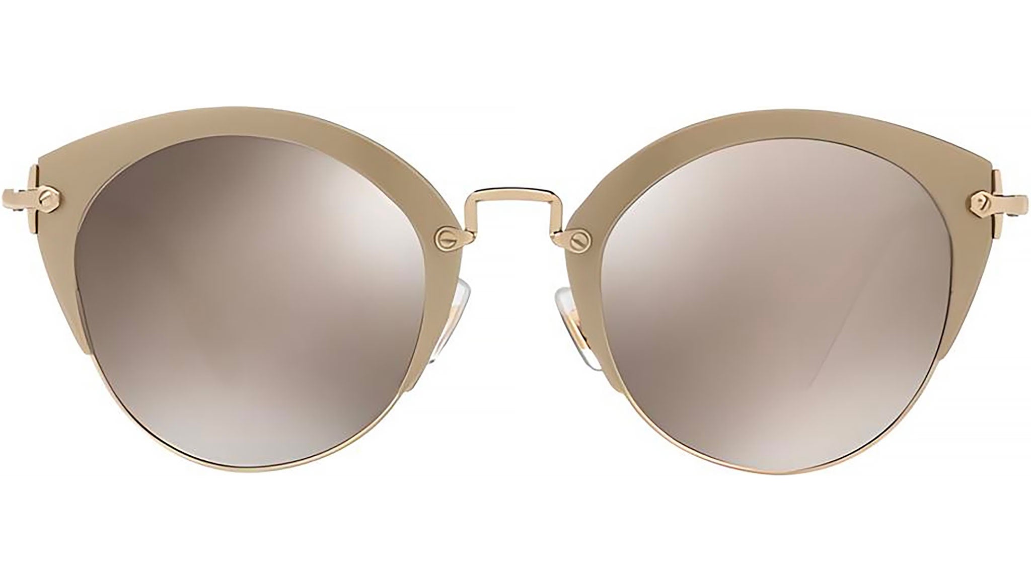 Occhiali da sole Miu Miu modello MU 53RS codice colore VAF1C0 in metallo oro con lenti marrone specchiato argento. Miu Miu offre creazioni uniche, in cui la costante ricerca stilistica si combina perfettamente con la maestria artigianale della lavorazione. Le silhouette femminili e sinuose delle montature sono espressione di una ricchezza dei dettagli che rispecchia pienamente i codici stilistici e l’indiscusso talento del brand nell’unire il design non convenzionale ad un romanticismo dai rimandi retrò.