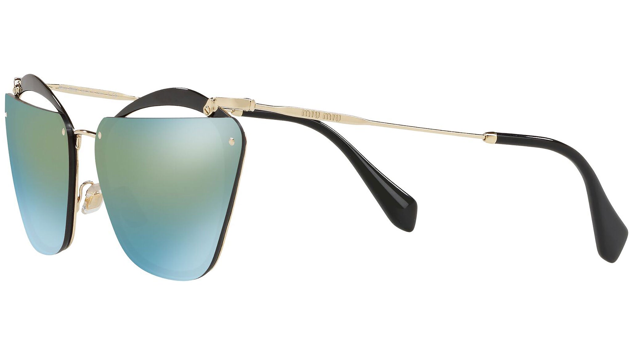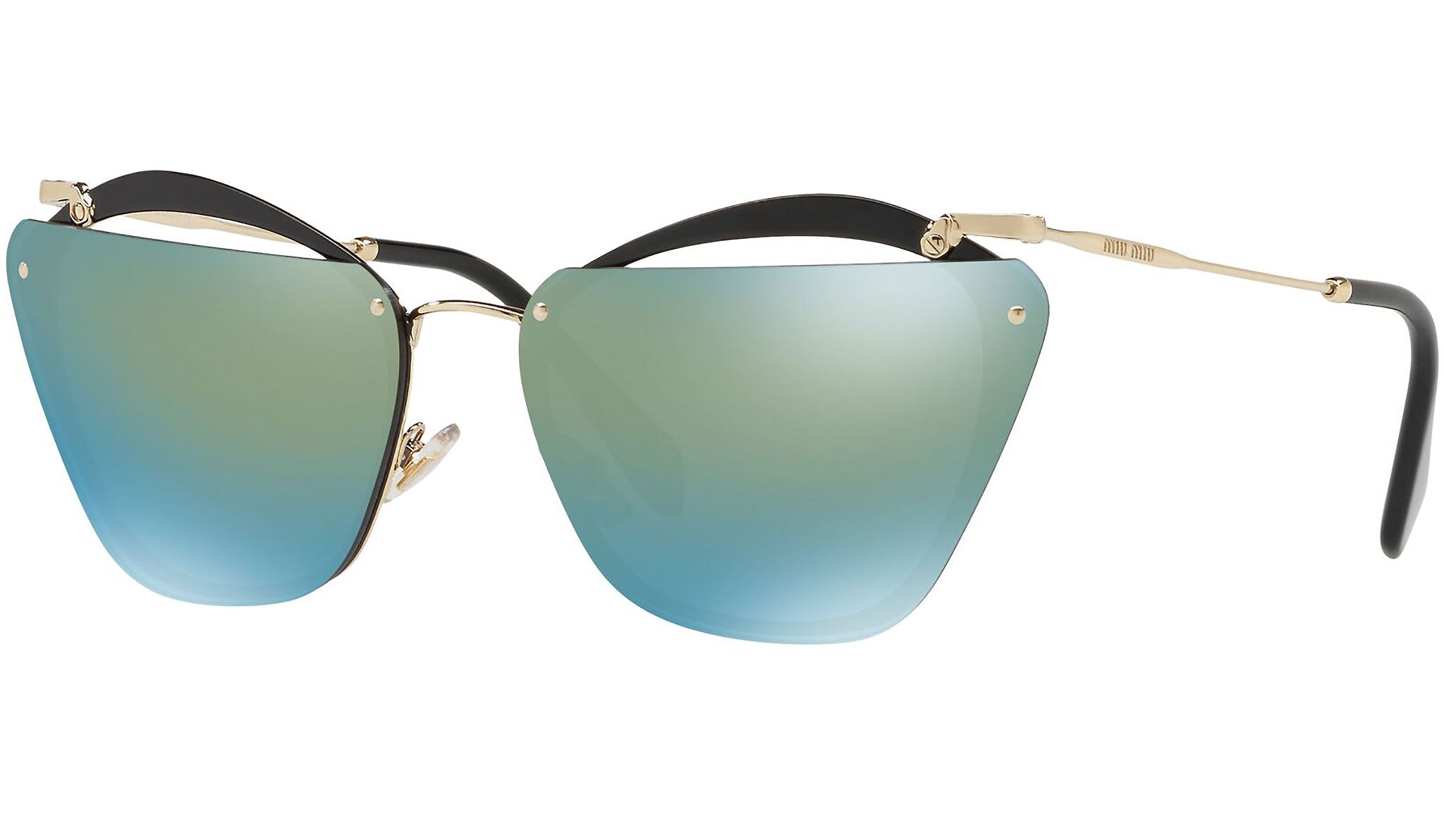 Occhiali da sole Miu Miu modello MU 54TS variante colore 1AB4J2 nero, con lenti color iridio smeraldo. Miu Miu offre creazioni uniche, in cui la costante ricerca stilistica si combina perfettamente con la maestria artigianale della lavorazione. Le silhouette femminili e sinuose delle montature sono espressione di una ricchezza dei dettagli che rispecchia pienamente i codici stilistici e l’indiscusso talento del brand nell’unire il design non convenzionale ad un romanticismo dai rimandi retrò.