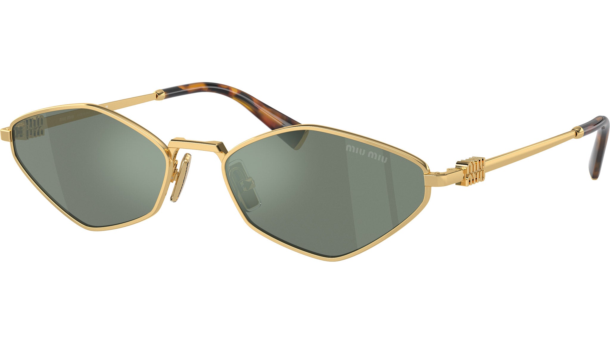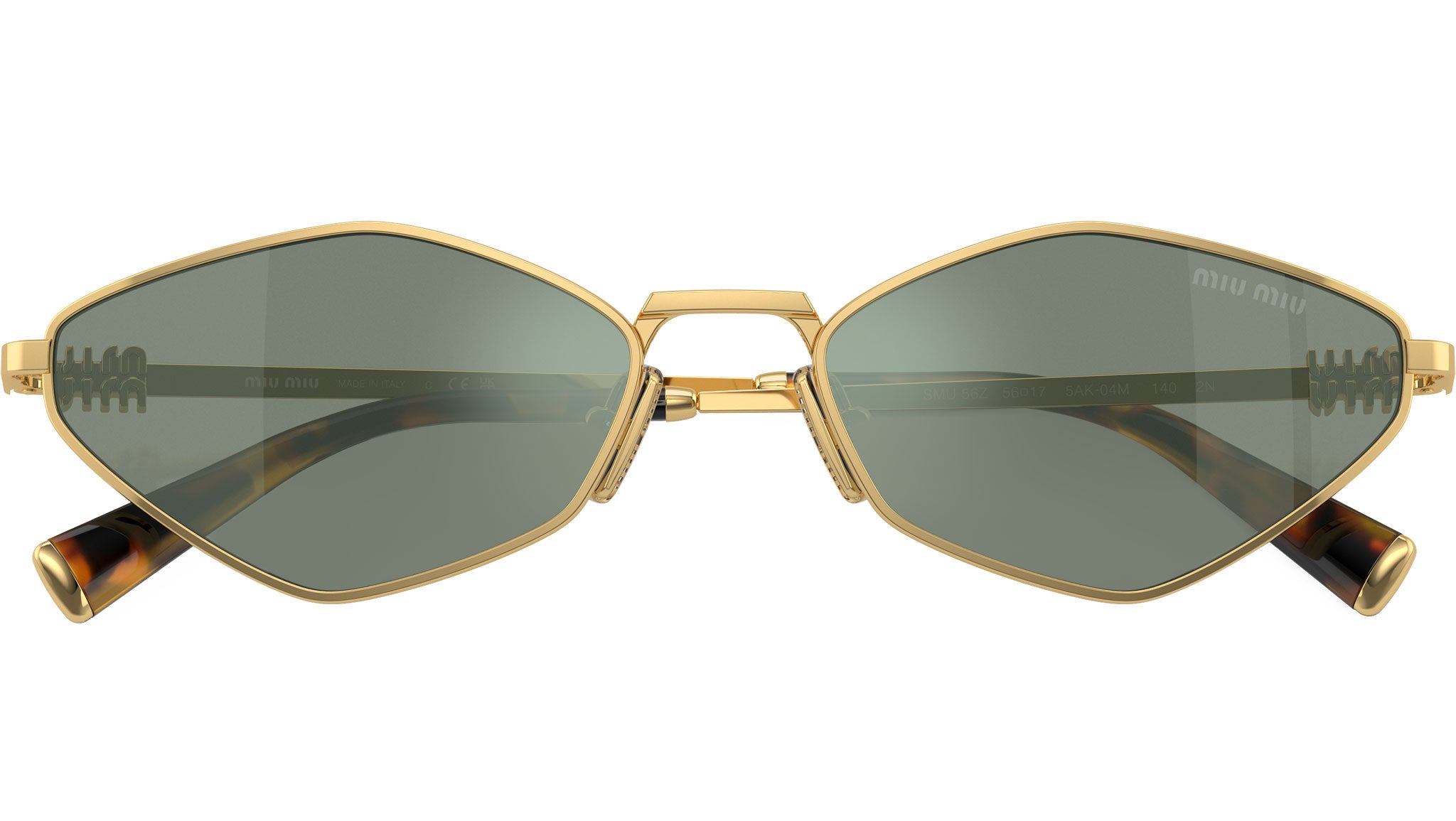 Occhiali da sole Miu Miu MU 56ZS 5AK04M donna con montatura geometrica in metallo oro e lenti in poliammide color verde a specchio argento interno. Naselli regolabili. Linea: Dna. Codice modello: 0MU 56ZS. Codice colore: 5AK04M. Made in Italy. Rivenditore autorizzato Miu Miu online. Gli occhiali vengono consegnati con custodia e accessori originali e sono coperti dalla garanzia ufficiale di 12 mesi del produttore.