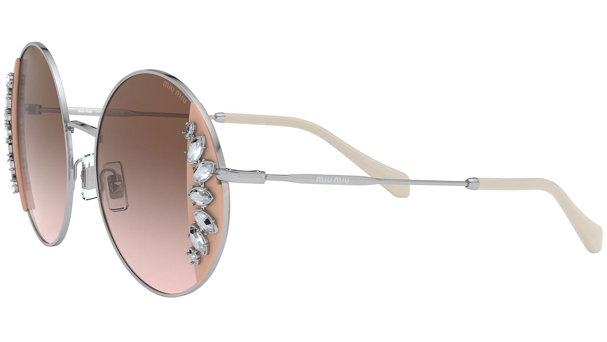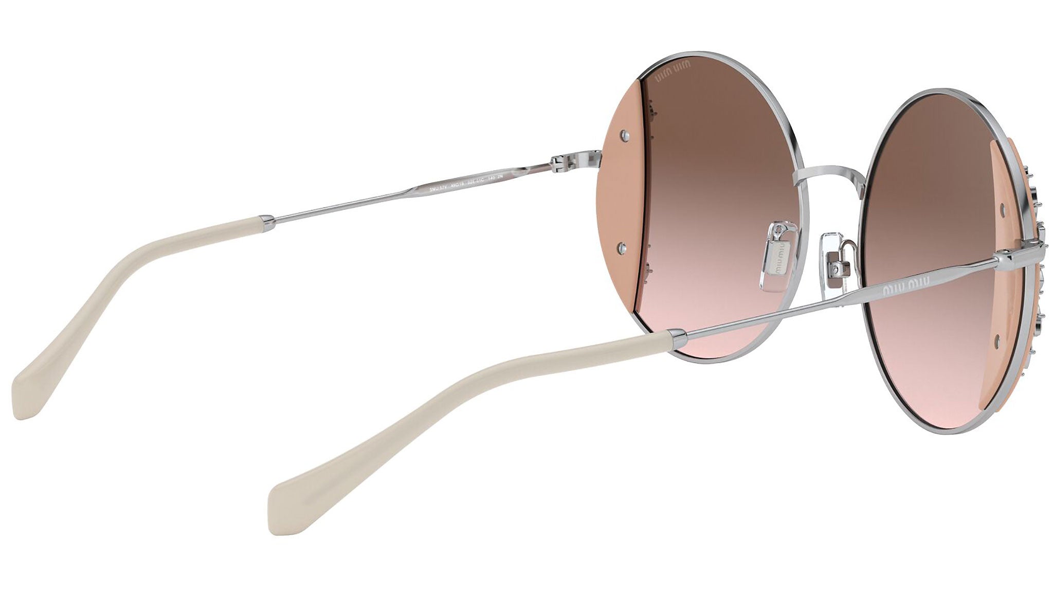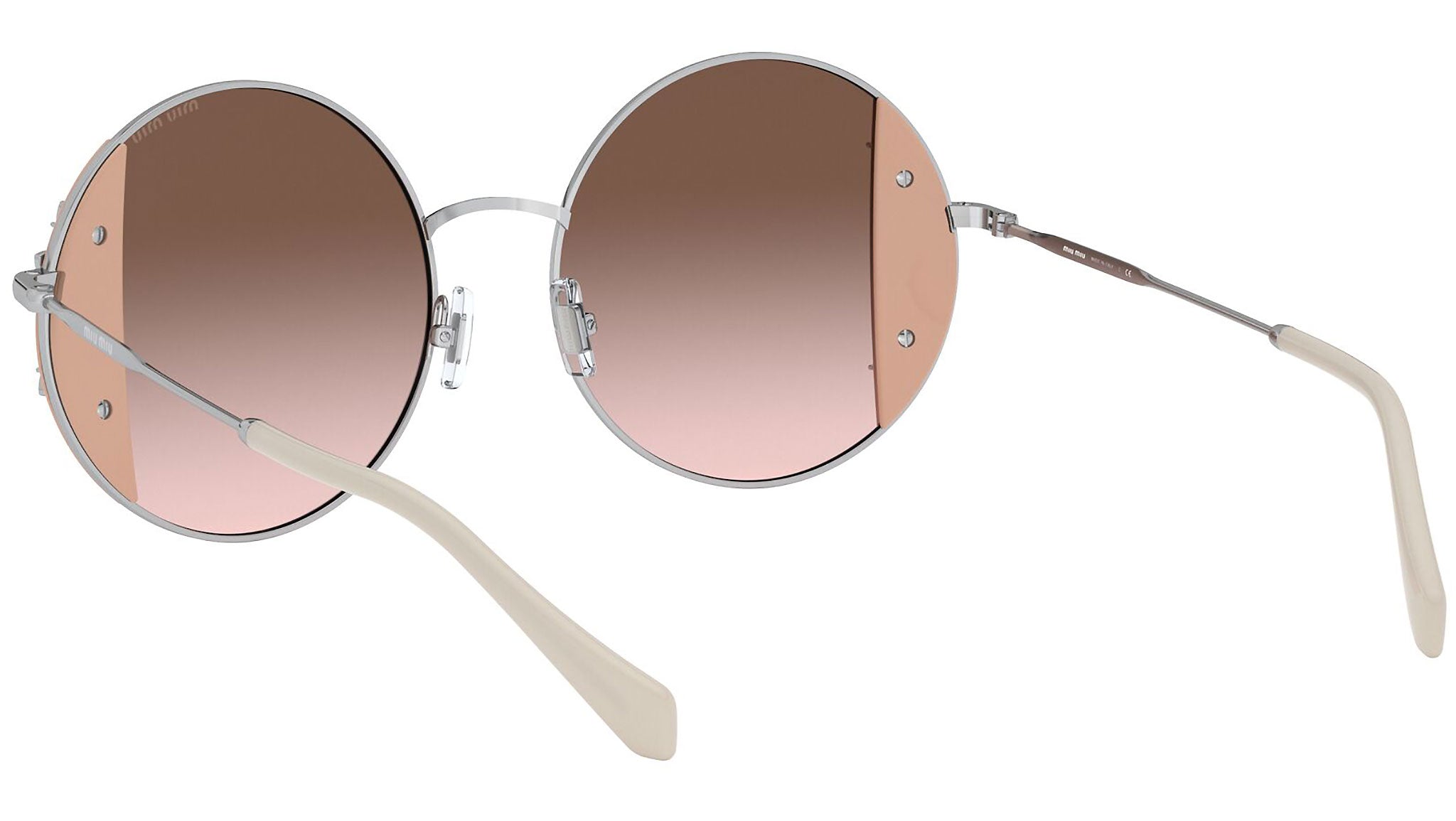 Occhiali da sole Miu Miu modello MU 57VS variante colore 02E01C rosa e argento, con lenti color marrone sfumato. Miu Miu offre creazioni uniche, in cui la costante ricerca stilistica si combina perfettamente con la maestria artigianale della lavorazione. Le silhouette femminili e sinuose delle montature sono espressione di una ricchezza dei dettagli che rispecchia pienamente i codici stilistici e l’indiscusso talento del brand nell’unire il design non convenzionale ad un romanticismo dai rimandi retrò.