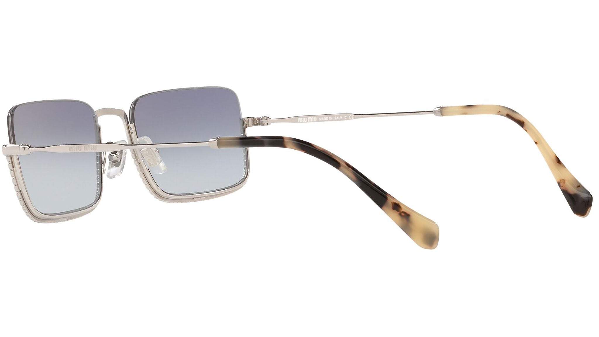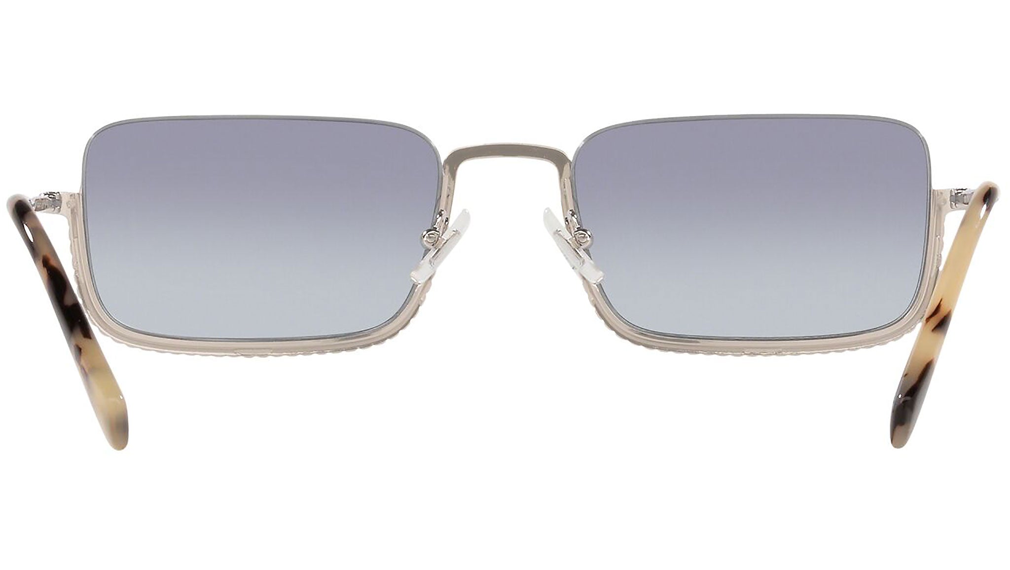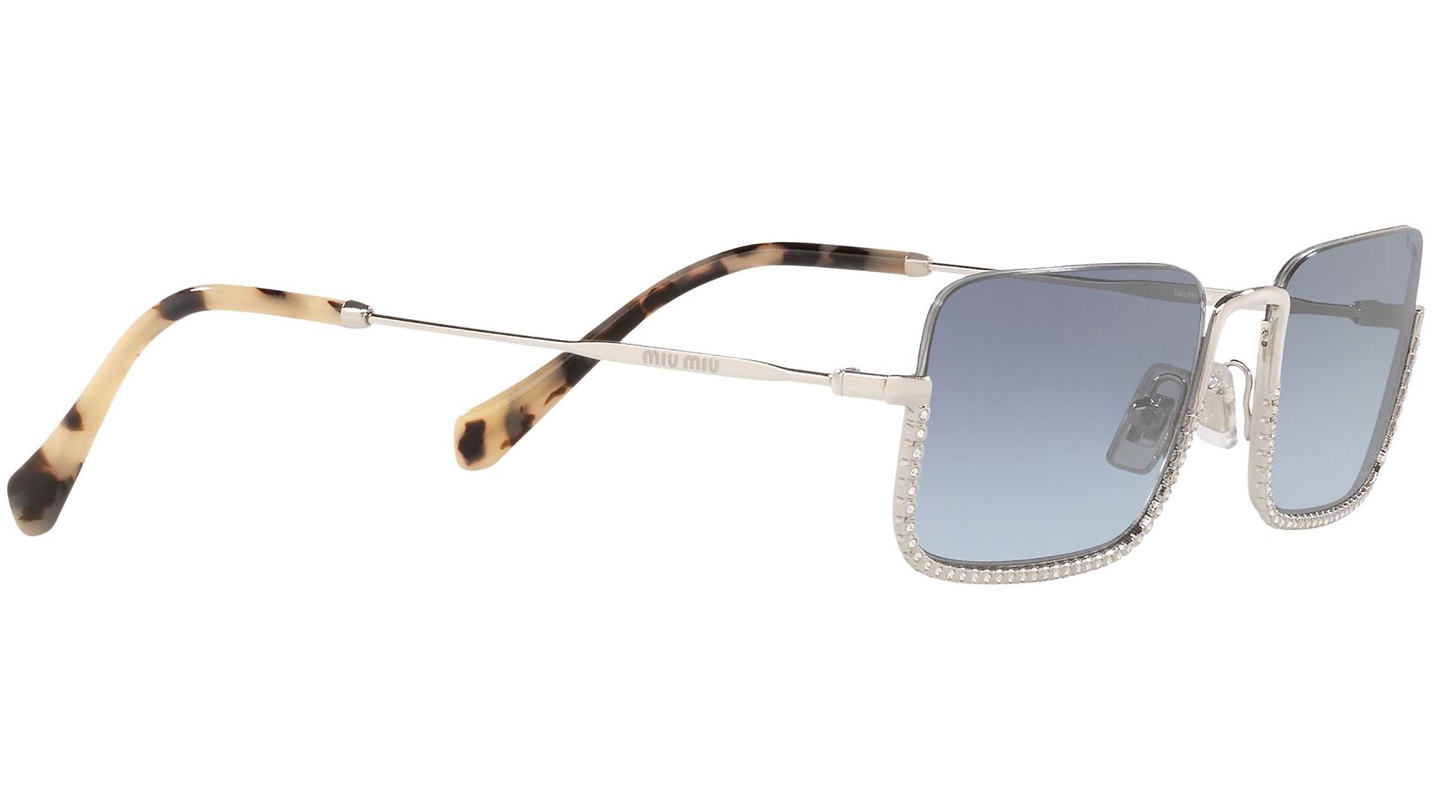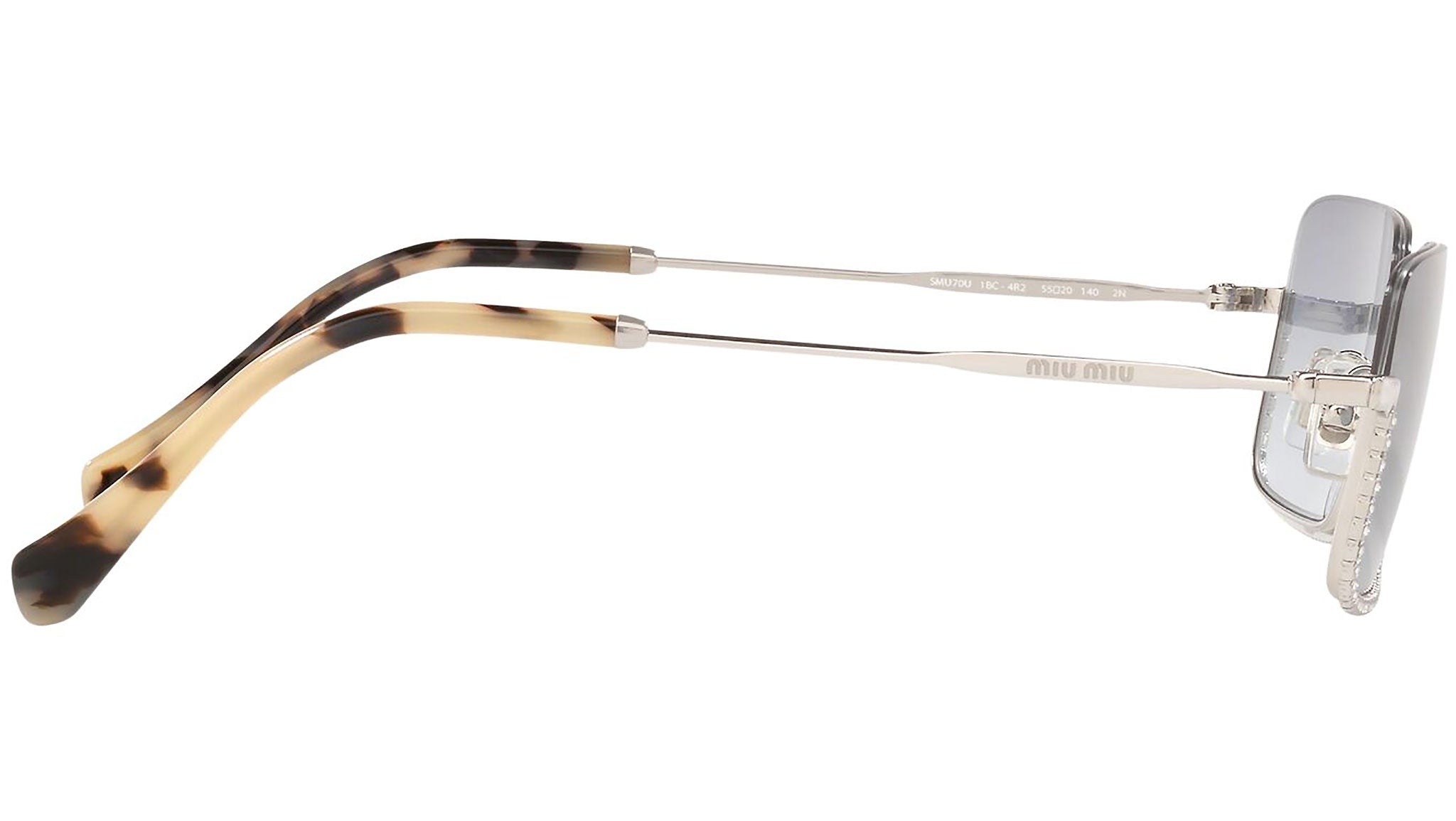 Occhiali da sole Miu Miu modello MU 70US variante colore 1BC4R2 argento, con lenti color blu gradiente. Miu Miu offre creazioni uniche, in cui la costante ricerca stilistica si combina perfettamente con la maestria artigianale della lavorazione. Le silhouette femminili e sinuose delle montature sono espressione di una ricchezza dei dettagli che rispecchia pienamente i codici stilistici e l’indiscusso talento del brand nell’unire il design non convenzionale ad un romanticismo dai rimandi retrò.