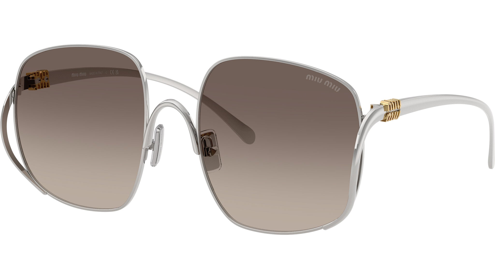 Occhiali da sole Miu Miu MU A57S 1BC30S donna con montatura quadrata in metallo argento e lenti in bio poliammide color grigio sfumato. Naselli regolabili. Linea: Main Collection. Codice modello: 0MU A57S. Codice colore: 1BC30S. Made in Italy. Rivenditore autorizzato Miu Miu online. Gli occhiali vengono consegnati con custodia e accessori originali e sono coperti dalla garanzia ufficiale di 12 mesi del produttore.