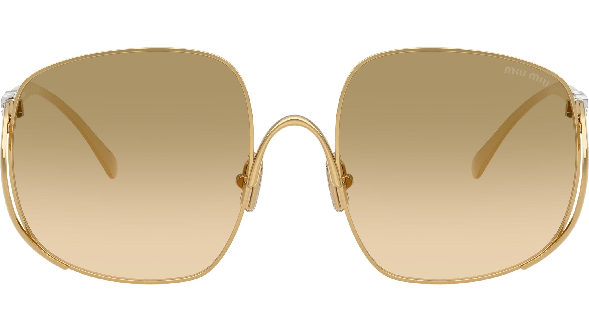 Occhiali da sole Miu Miu MU A57S 5AK20S donna con montatura quadrata in metallo oro e lenti in bio poliammide color camomilla sfumato. Naselli regolabili. Linea: Main Collection. Codice modello: 0MU A57S. Codice colore: 5AK20S. Made in Italy. Rivenditore autorizzato Miu Miu online. Gli occhiali vengono consegnati con custodia e accessori originali e sono coperti dalla garanzia ufficiale di 12 mesi del produttore.
