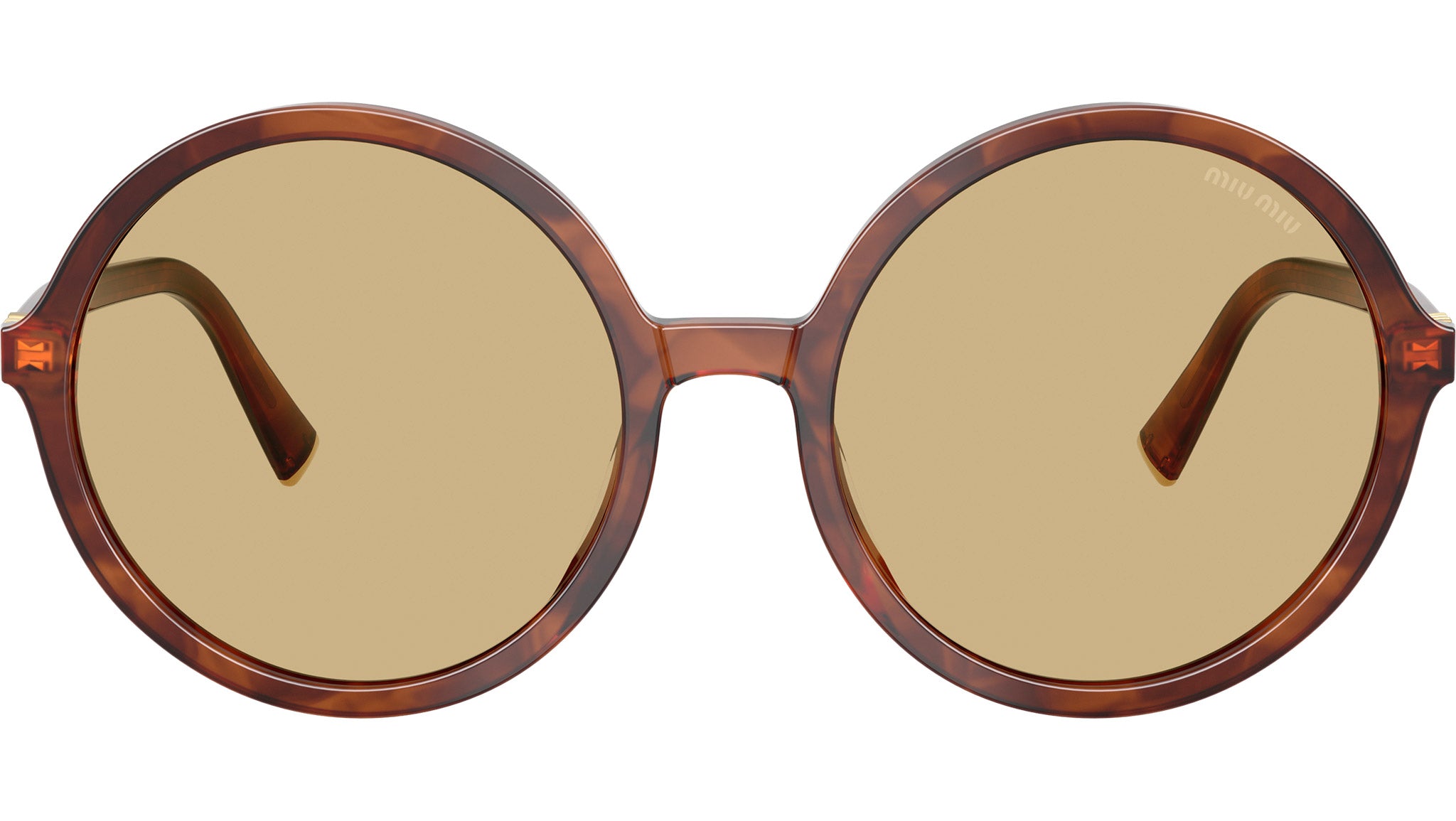Occhiali da sole Miu Miu MU B02S 26E10R donna con montatura rotonda in acetato tabacco striato e lenti in bio poliammide color giallo. Vestibilità a ponte alto. Linea: Main Collection. Codice modello: 0MU B02S. Codice colore: 26E10R. Made in Italy. Rivenditore autorizzato Miu Miu online. Gli occhiali vengono consegnati con custodia e accessori originali e sono coperti dalla garanzia ufficiale di 12 mesi del produttore.