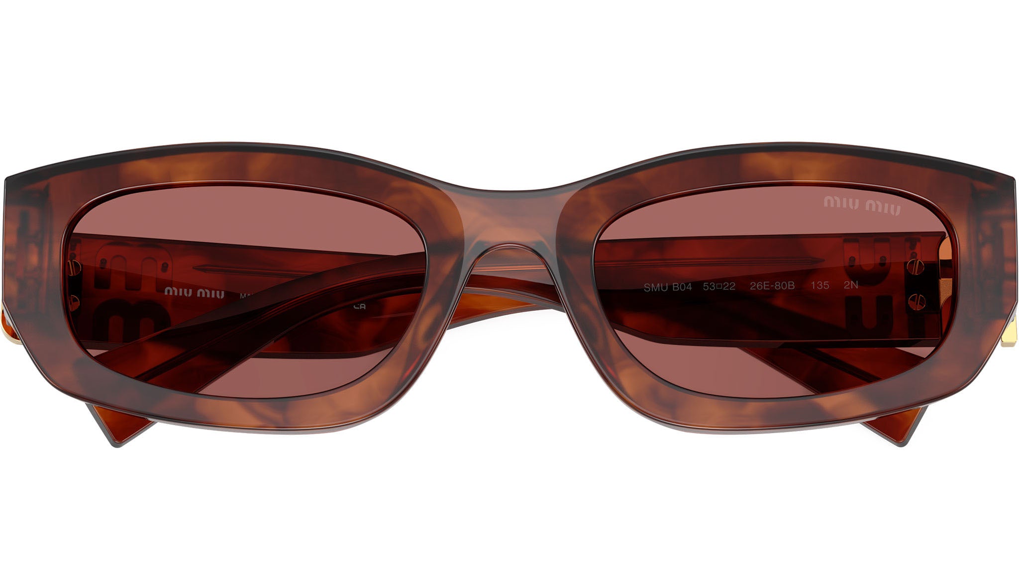 Occhiali da sole Miu Miu MU B04S 26E80B donna con montatura geometrica in acetato tabacco striato e lenti in bio poliammide color violetto scuro. Vestibilità a ponte alto. Linea: Main Collection. Codice modello: 0MU B04S. Codice colore: 26E80B. Made in Italy. Rivenditore autorizzato Miu Miu online. Gli occhiali vengono consegnati con custodia e accessori originali e sono coperti dalla garanzia ufficiale di 12 mesi del produttore.
