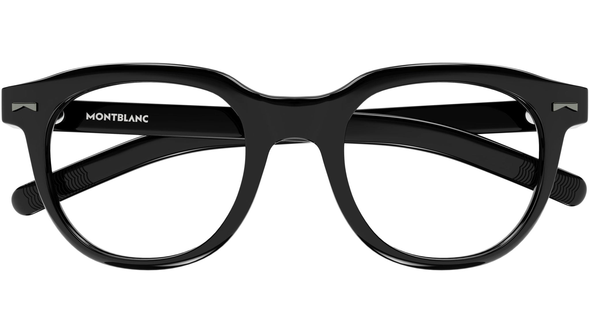 Occhiali da vista Monblanc linea Millennials modello MB0261O variante colore 001 nero lucido tinta unita con astine color lenti demo.