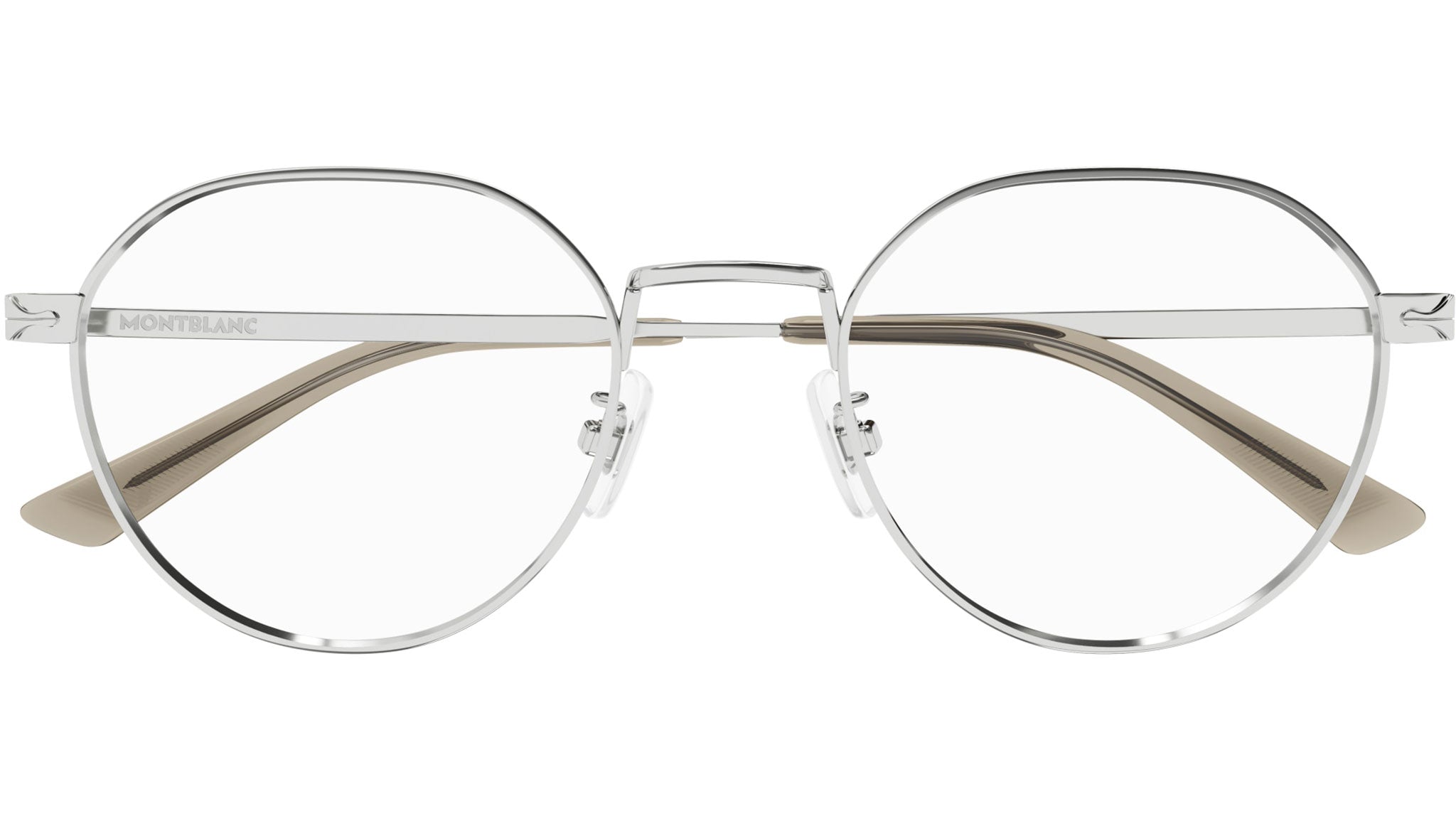 Occhiali da vista Montblanc modello MB0310OA panthos linea Nib in metallo, codice colore 003 argento lucido con aste color argento e lenti demo.