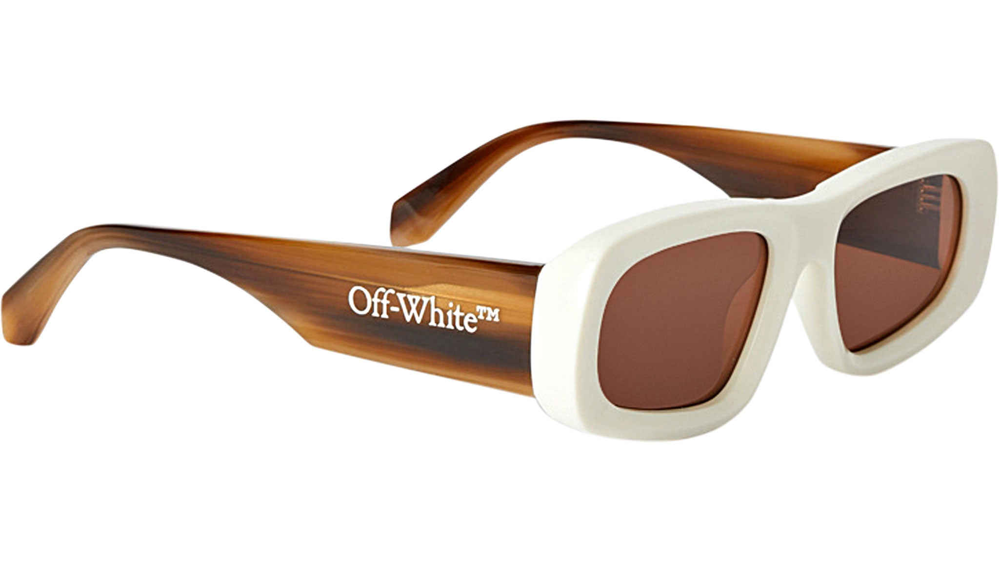 Vibrazioni vintage caratterizzano il modello Off-White Austin: una forma ovale con le stesse aste presentate nei modelli precedenti, per un look audace. La parte anteriore è lavorata, per una montatura dinamica e leggera. Le proposte di colore spaziano dai classici nero e havana, alle tonalità più divertenti e pop, bianco e giallo, con aste havana a righe in contrasto. Il logo Off-White è inciso al laser sulle aste, conferendo uno stile ulteriormente classico. Logo inciso sulla lente.