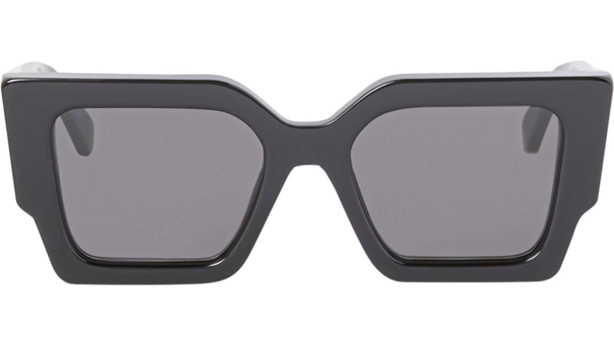 Occhiali da sole Off-White modello Catalina codice colore 1007 con frontale in acetato nero e lenti cat. 3 in polimero CR-39 grigio scuro. Rivenditore autorizzato Off-White Eyewear online. Gli occhiali vengono consegnati con custodia e accessori originali e sono coperti dalla garanzia ufficiale di 12 mesi del produttore.