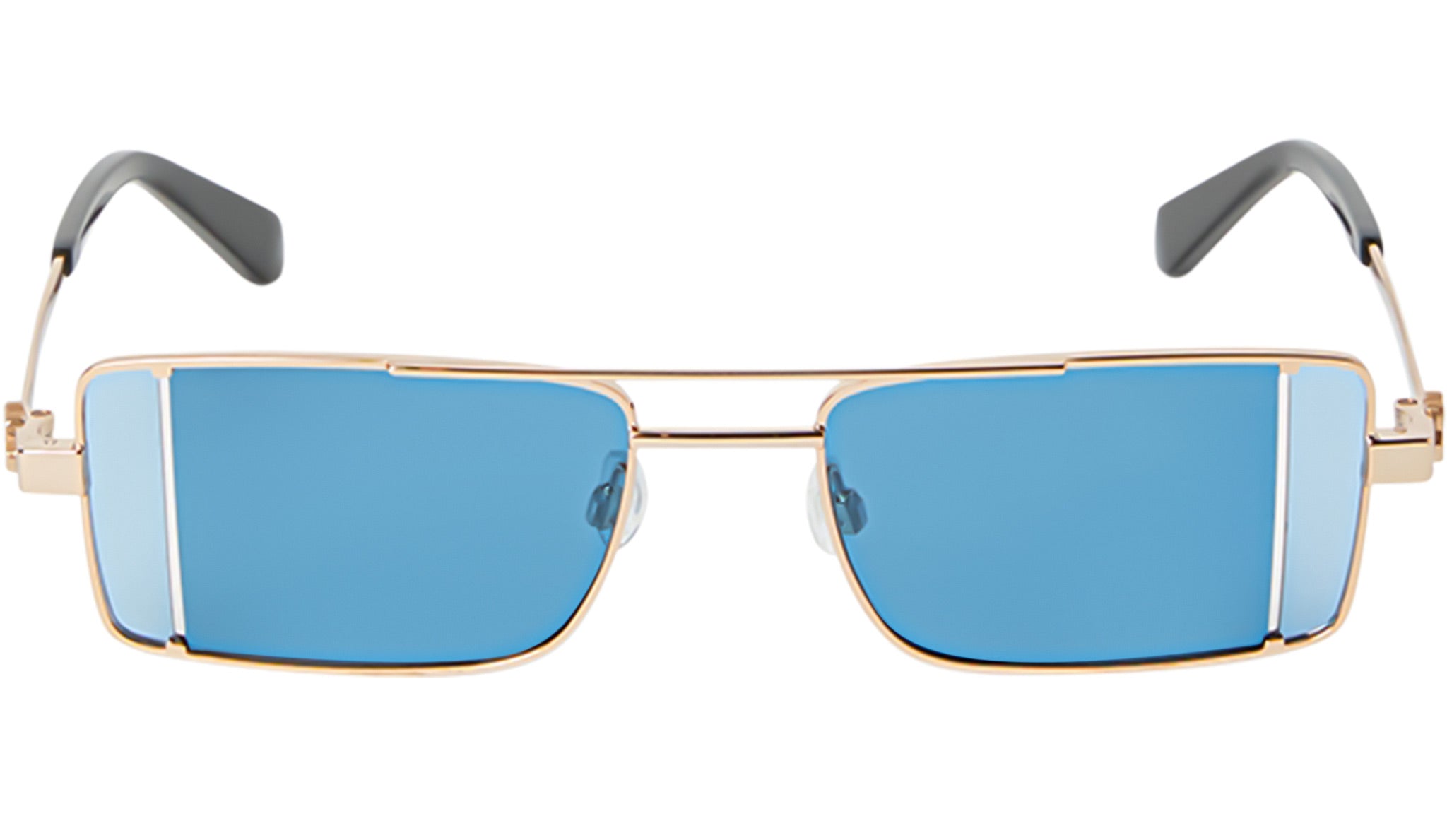 Un classico dell’eyewear, la silhouette rettangolare pilot viene reinterpretata in chiave contemporanea attraverso dettagli moderni. Il modello Cortez presenta una montatura sottile e slanciata in metallo, arricchita da un doppio ponte e due tagli inaspettati sulle lenti, che conferiscono un tocco futuristico alla sua estetica rétro. Disponibile in tre varianti cromatiche, due delle quali caratterizzate da lenti bicolore in tonalità blu o bordeaux, oltre a un’elegante versione total black, ogni combinazione è abbinata a una raffinata base oro.