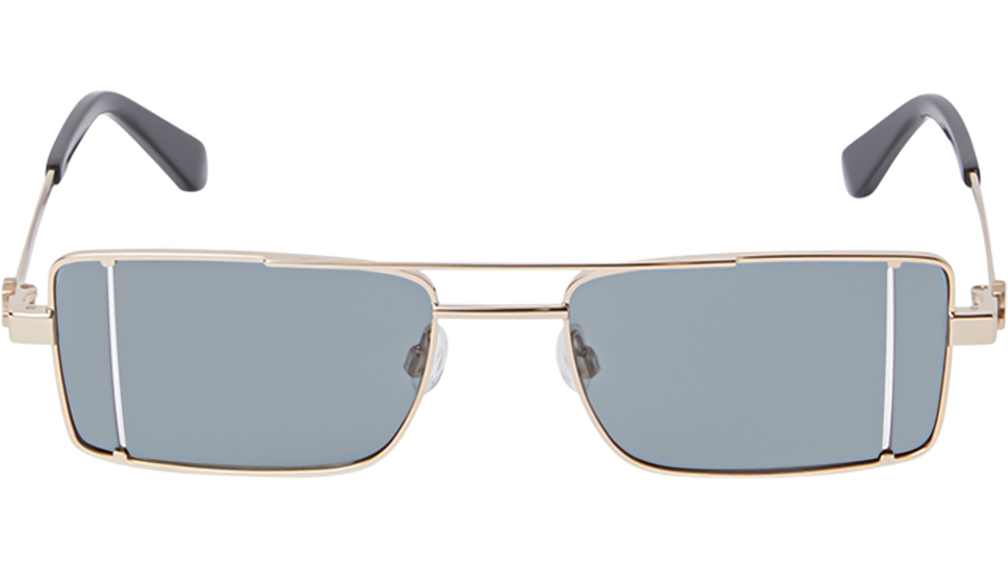Un classico dell’eyewear, la silhouette rettangolare pilot viene reinterpretata in chiave contemporanea attraverso dettagli moderni. Il modello Cortez presenta una montatura sottile e slanciata in metallo, arricchita da un doppio ponte e due tagli inaspettati sulle lenti, che conferiscono un tocco futuristico alla sua estetica rétro. Disponibile in tre varianti cromatiche, due delle quali caratterizzate da lenti bicolore in tonalità blu o bordeaux, oltre a un’elegante versione total black, ogni combinazione è abbinata a una raffinata base oro.