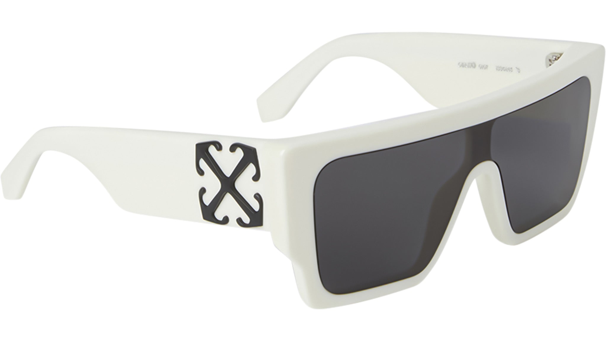 Il modello Marion di Off-White reinterpreta in chiave audace e futuristica l’eyewear classico, con una lente unica e continua che si estende senza interruzioni su tutto il frontale, garantendo massima copertura e un’estetica d’impatto. La silhouette rettangolare, leggermente curva ma piatta, esalta il design essenziale, mentre le aste oversize sono impreziosite dall’iconico logo a freccia Off-White™, elegantemente incastonato su entrambi i lati come firma distintiva. Proposto in una palette cromatica minimalista ma decisa—nero intenso, bianco audace e una raffinata variante avana dal fascino rétro con lenti verdi—il modello esprime un carattere contemporaneo e un’eleganza dal forte richiamo fashion.