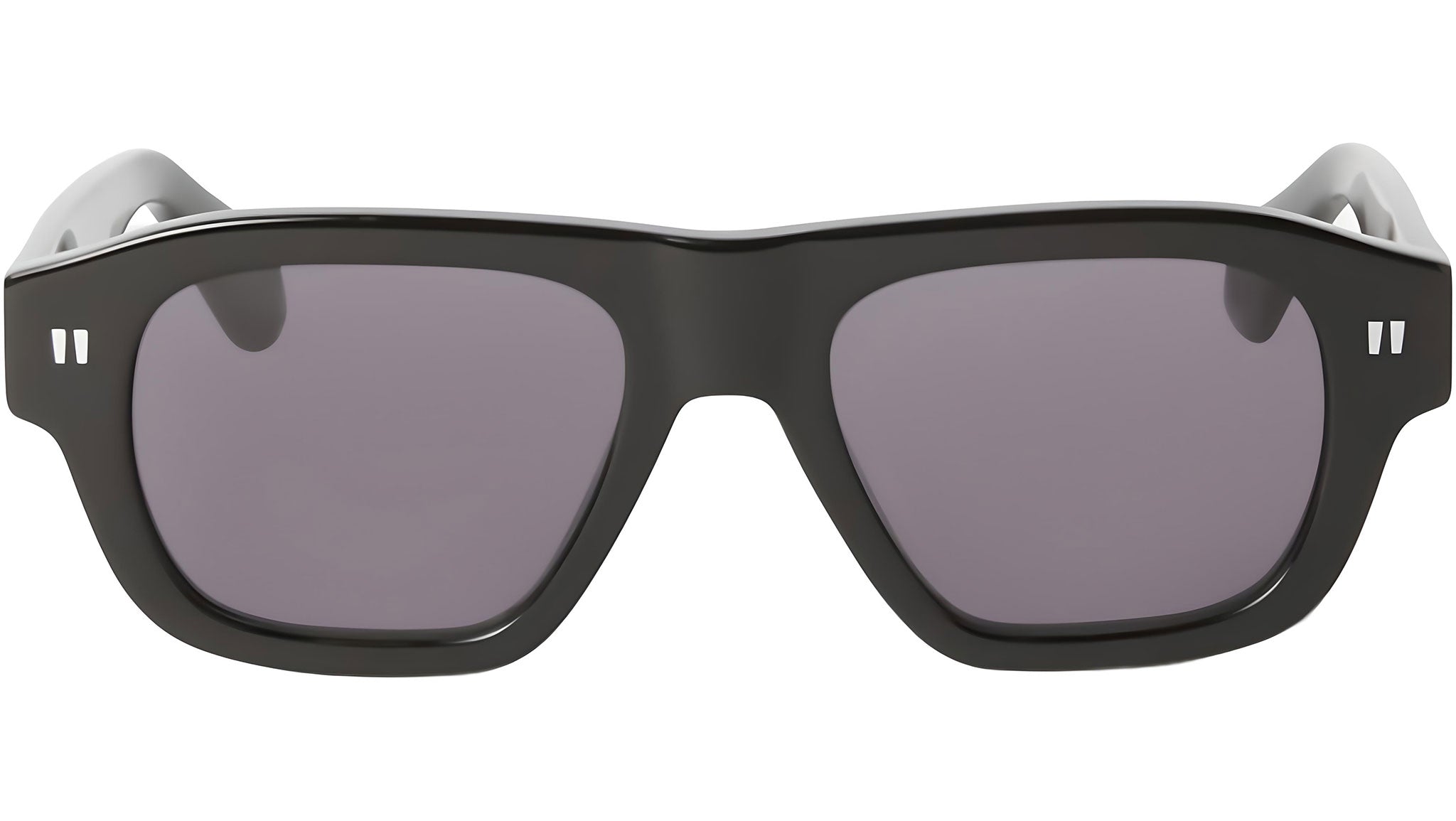 Occhiali da sole Off-White modello Providence codice colore 1007 con frontale in acetato nero tinta unita e lenti cat. 3 in polimero CR-39 grigio scuro. Rivenditore autorizzato Off-White Eyewear online. Gli occhiali vengono consegnati con custodia e accessori originali e sono coperti dalla garanzia ufficiale di 12 mesi del produttore.