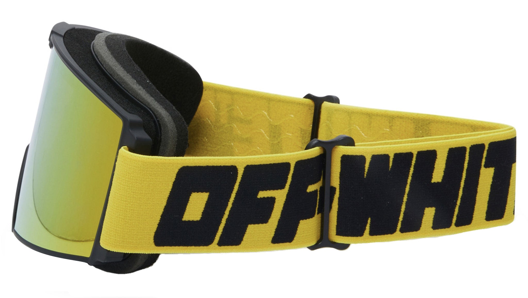 Off-White lancia sul mercato per la prima volta la propria esclusiva maschera da sci, declinata in giallo - uno dei colori caratteristici del brand - rosso e verde. La maschera si contraddistingue per l'audace presenza del logo, posto sia sulla fascia elastica con lo stesso design ispirato all'iconica cintura industriale Off-White, sia sul frontale, come scritta ma anche come logo laserato sulla lente specchiata - il logo dell’omino che nuota. La forma è squadrata e avvolge il viso in maniera confortevole. La lente cilindrica garantisce una visione periferica ottimale. La maschera è disponibile con la tecnologia anti-appannamento.