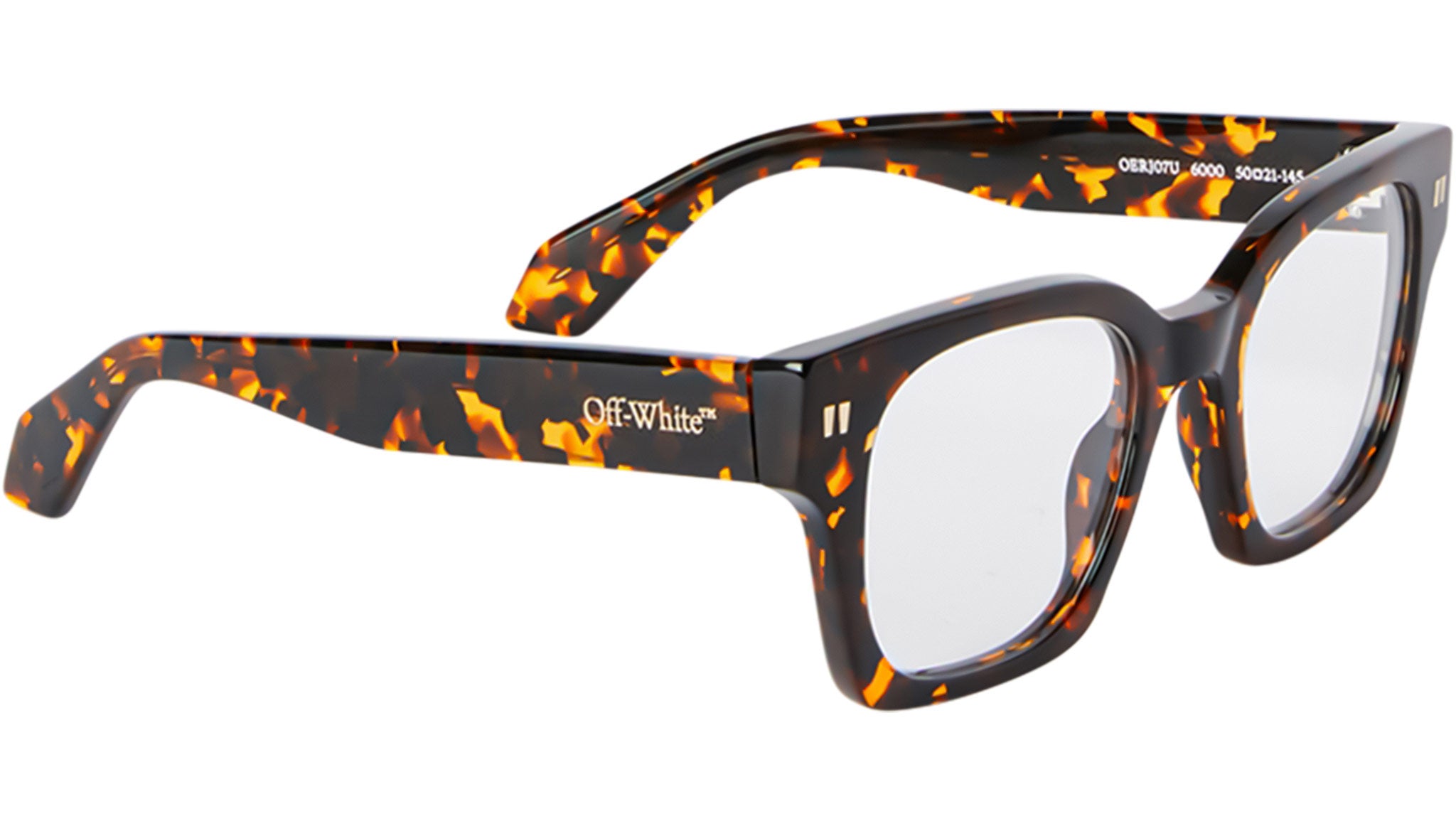 Style 7U di Off-White presenta montature geometriche in acetato con profili puliti e linee nette, caratterizzate da una silhouette quadrata che si allarga leggermente sui lati per un tocco moderno. Le iconiche virgolette Off-White™ compaiono come un delicato dettaglio metallico sulla parte anteriore della montatura, un sottile omaggio alle origini del brand. Il logo con lettering è realizzato come elemento metallico 3D sulle aste, aggiungendo un altro carattere distintivo. Disponibile in quattro colori versatili—due tonalità piene, nero e avana scuro, e due varianti lattiginose, beige e verde salvia—unisce un design senza tempo con un branding contemporaneo.