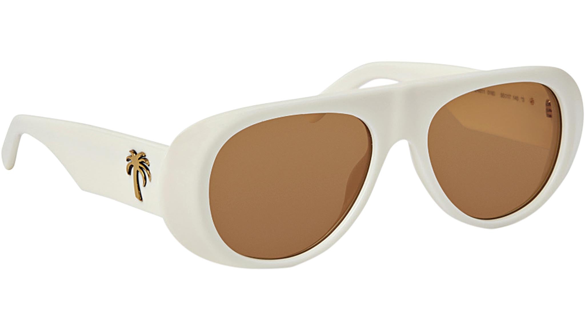 Sierra di Palm Angels è un occhiale da sole dalla classica forma aviator, una fusione retrò-contemporanea con un design più arrotondato. Per la prima volta, viene introdotto un nuovo logo sul lato: il codice dell'iconica palma viene inserito anche nella categoria eyewear, esprimendo al massimo il vibe californiano.